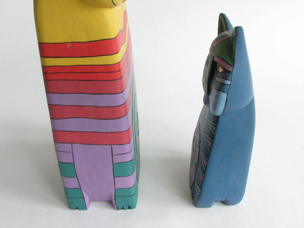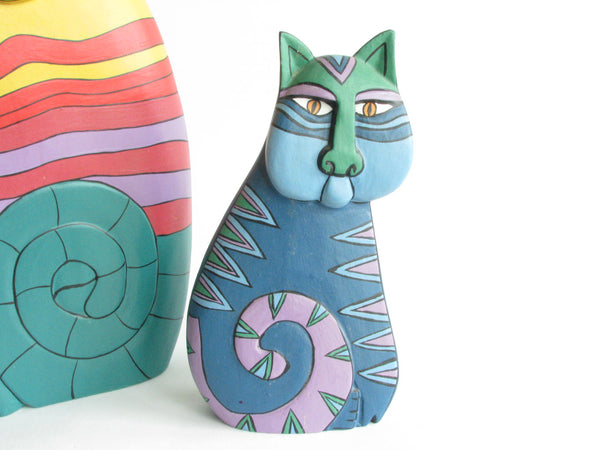 1980s Laurel Burch Colorful Wooden Cat Statues - a Pair