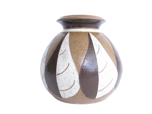 1980s Mid-Century Modern Pottery Vase with Brown and White Leaves by Artist Nelson