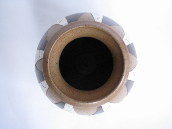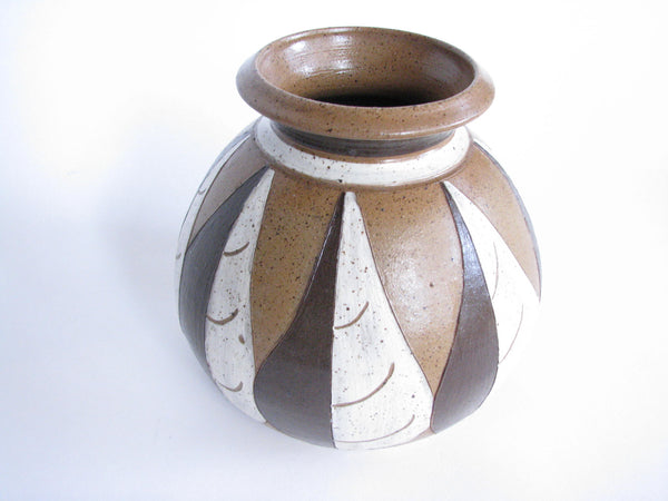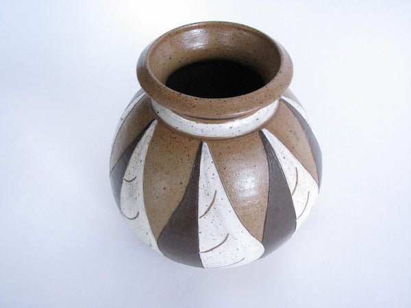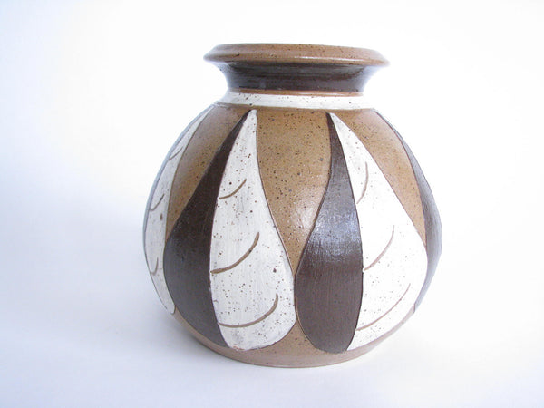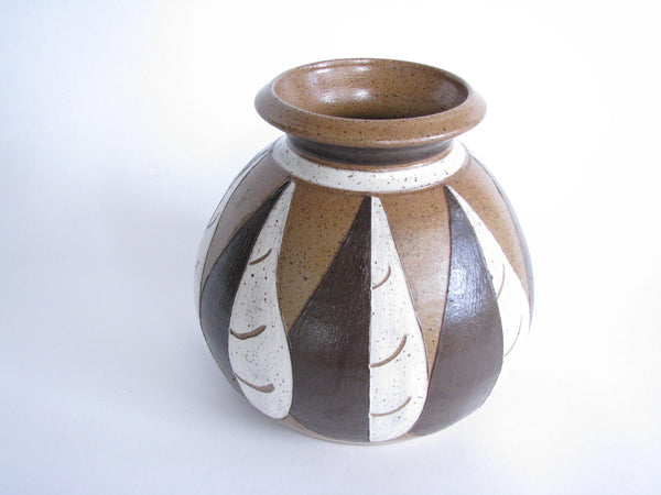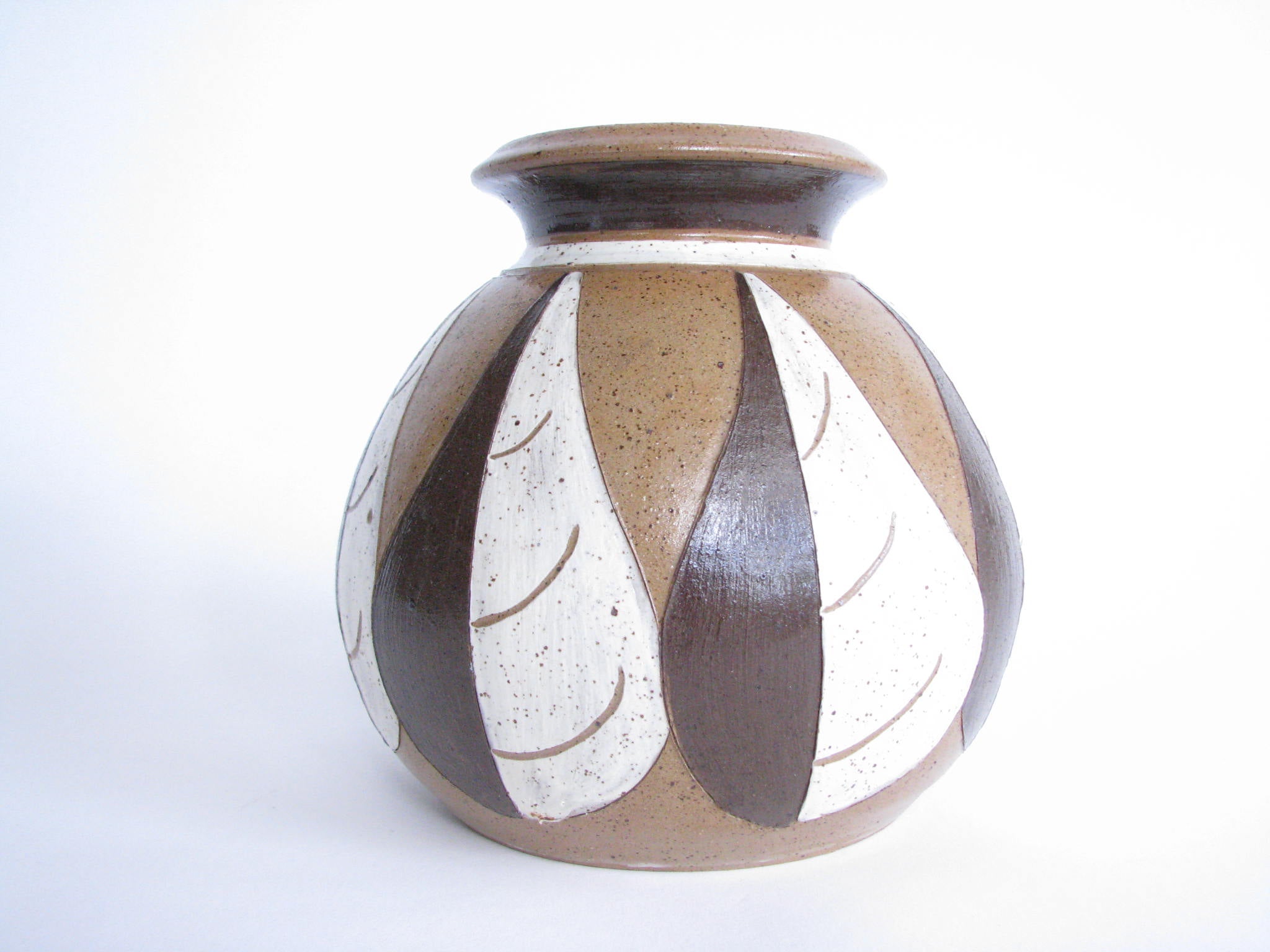 edgebrookhouse - 1980s Mid-Century Modern Pottery Vase with Brown and White Leaves by Artist Nelson