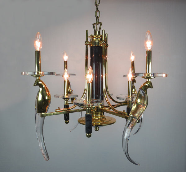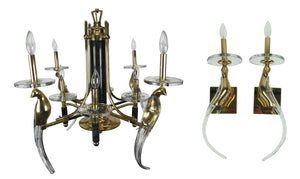 1980s Nulco Crystal, Brass and Marble Bird of Paradise Chandelier and Sconces Set by Sergio Orozco Epoch Collection