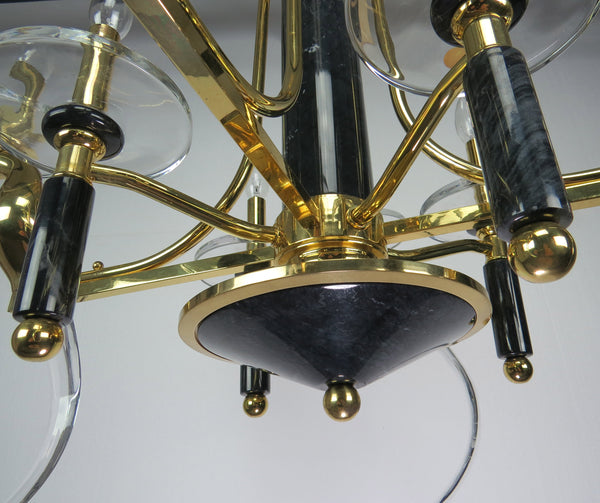 SThis visually stunning chandelier and sconces are limited edition Nulco pieces from the Epoch Collection. Meticulously handcrafted, these items blend hand-polished solid brass, crystal and marble classical design elements into a unique statement of contemporary elegance. This fixture is a worthy addition to the finest of interiors and a possession to be treasured and enjoyed for a lifetime.