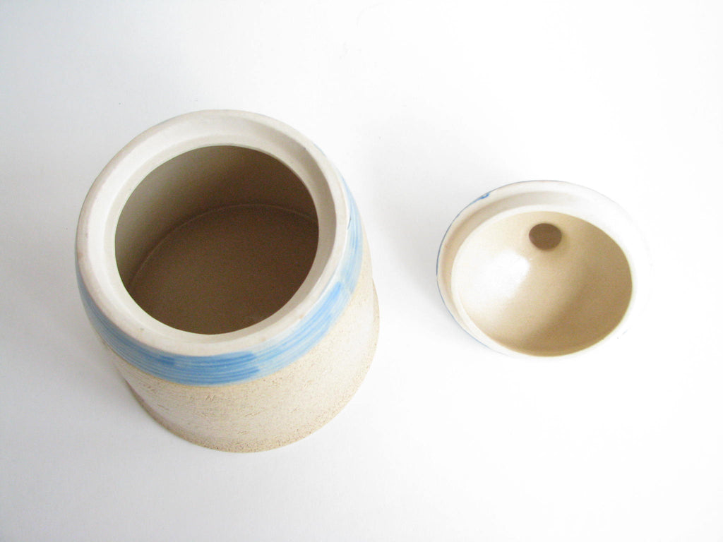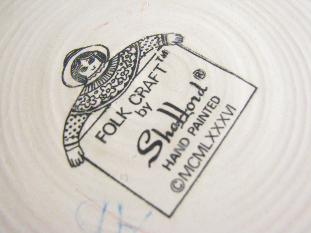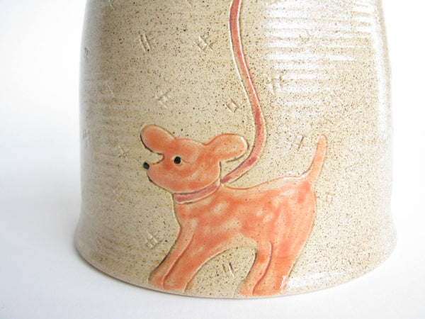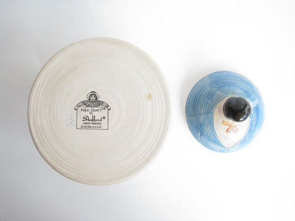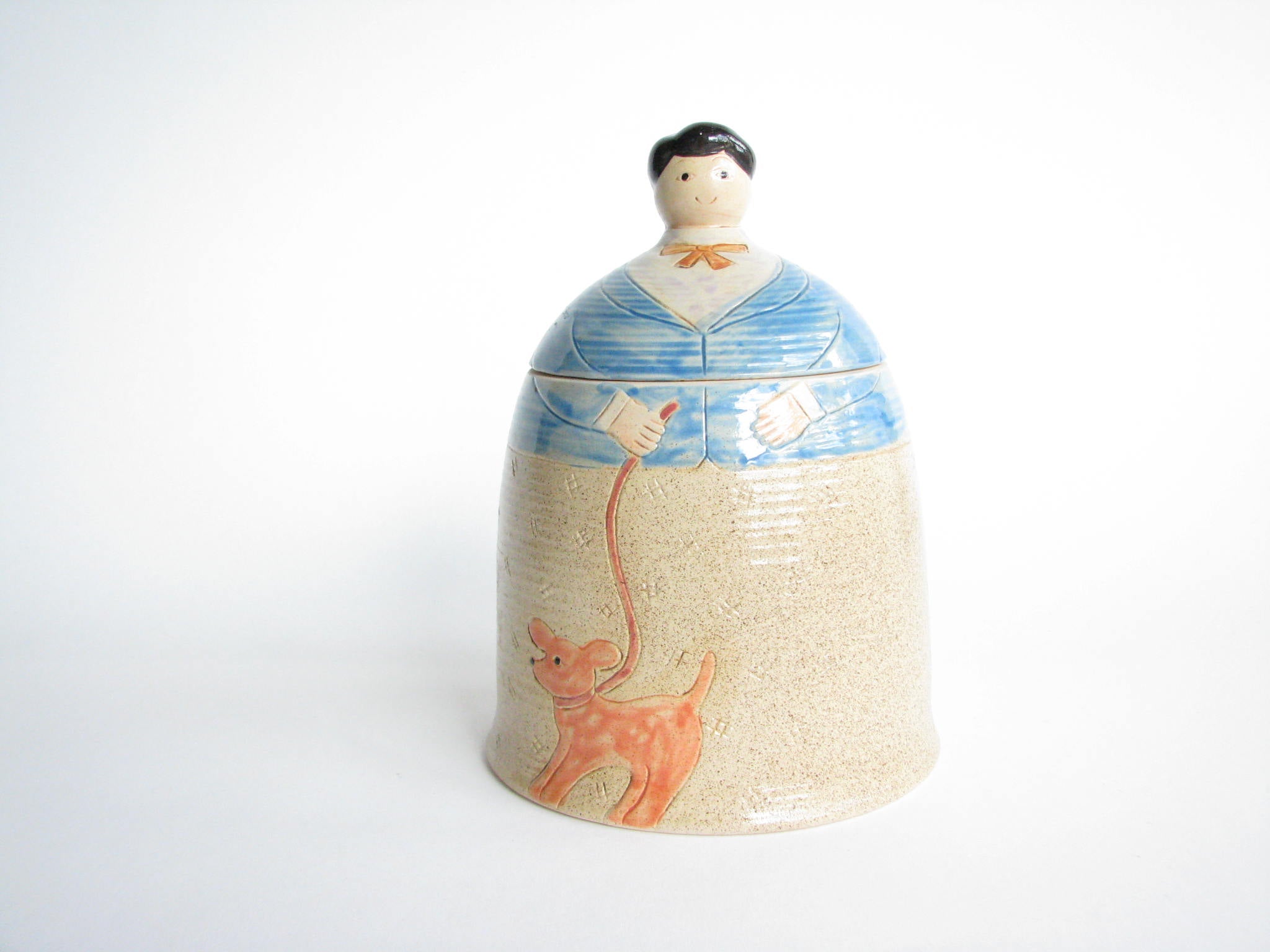 1990s Shafford Folk Art Pottery Woman with Dog Lidded Jar / Canister