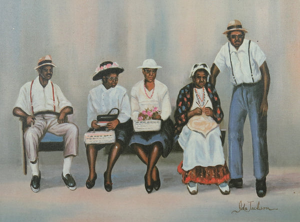 African American Ida Jackson signed family portrait. Genuine color lithograph on canvas.