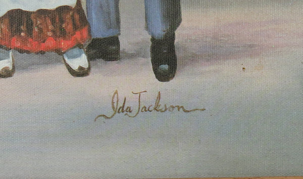 African American Ida Jackson Signed Family Portrait Genuine Lithograph on Canvas