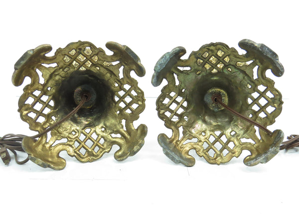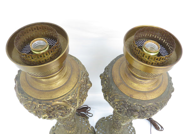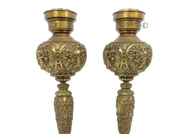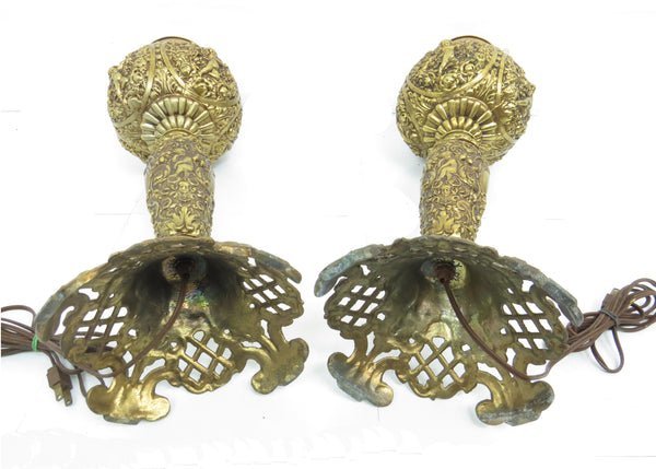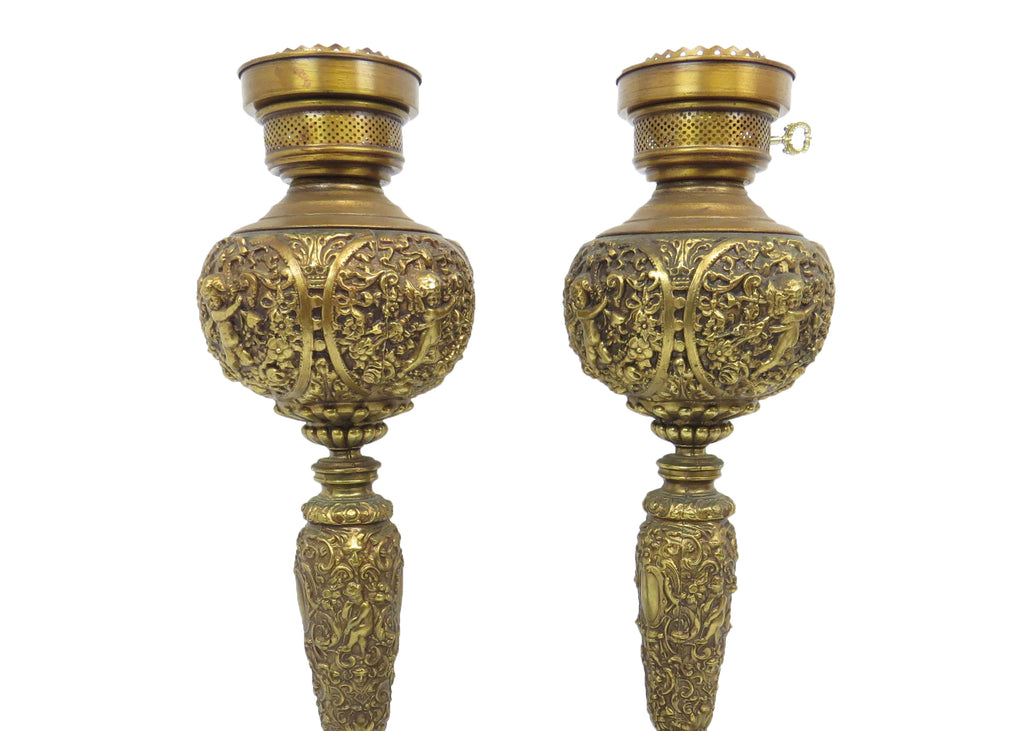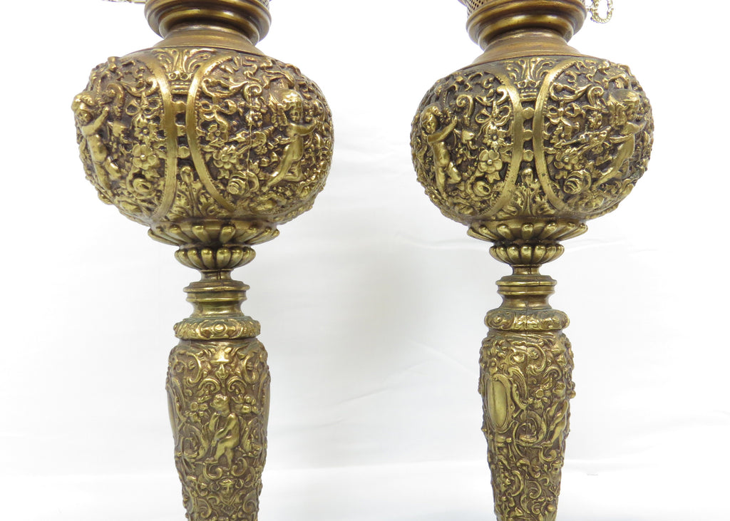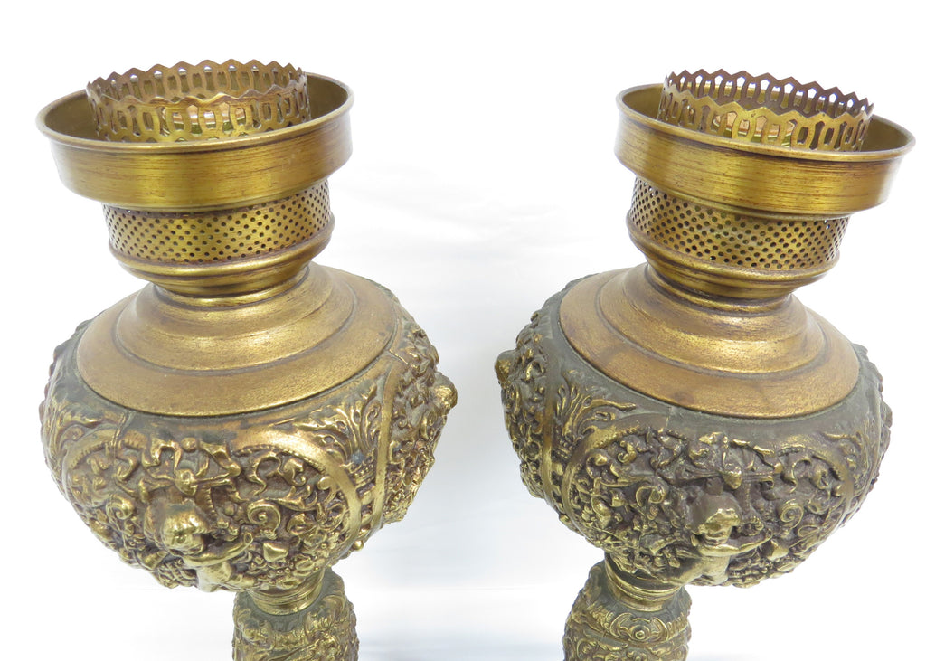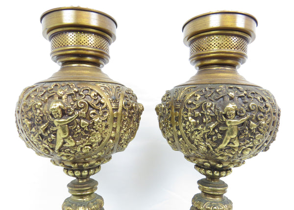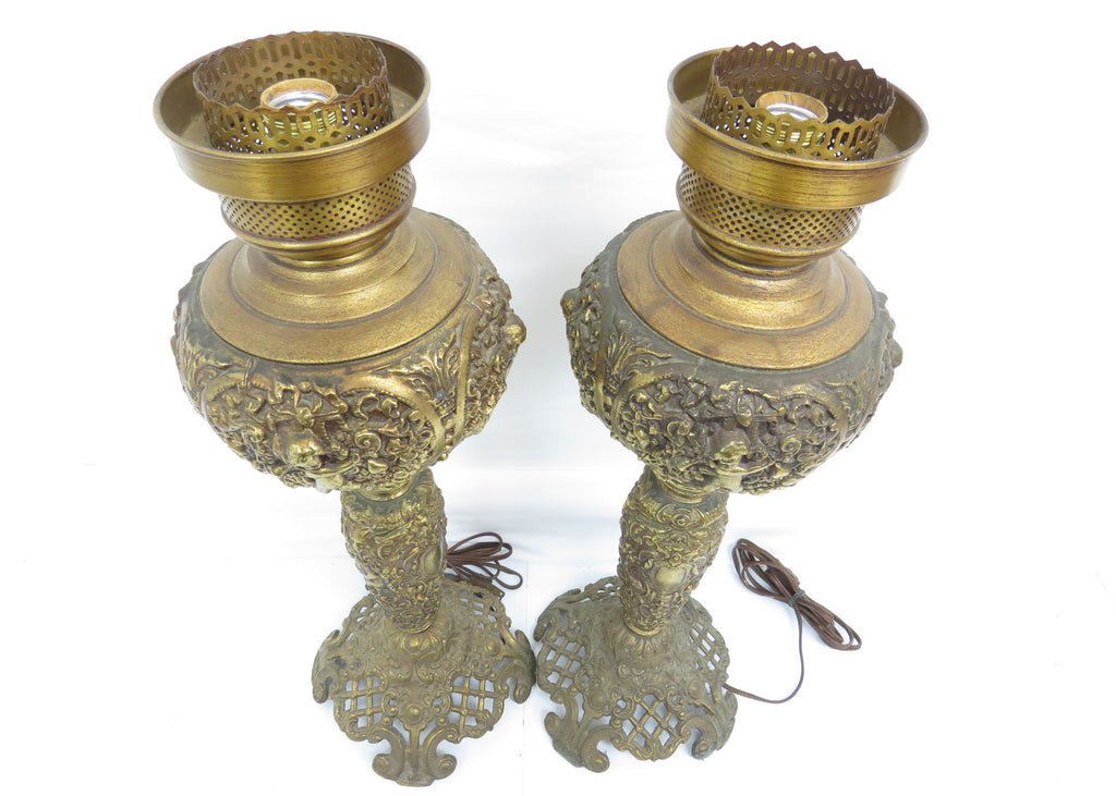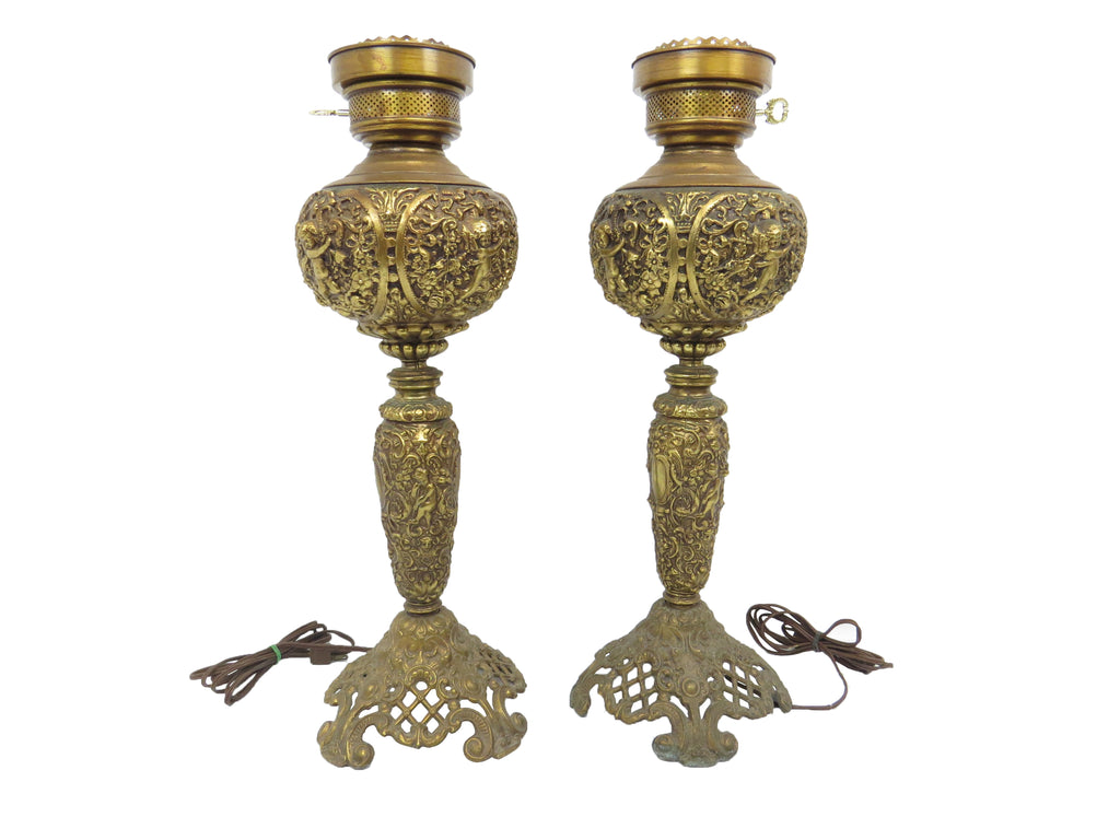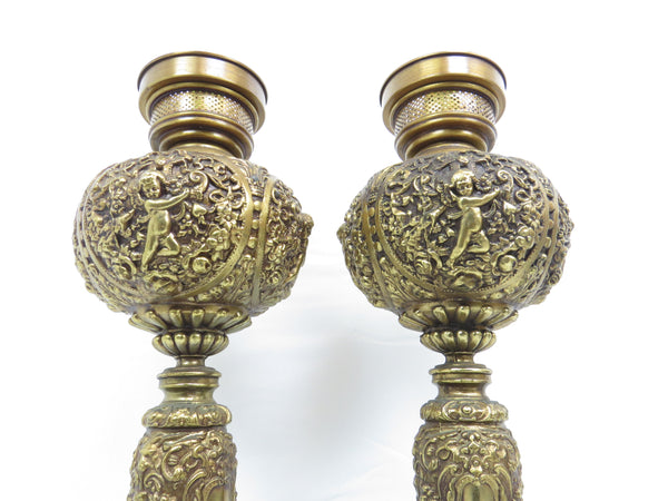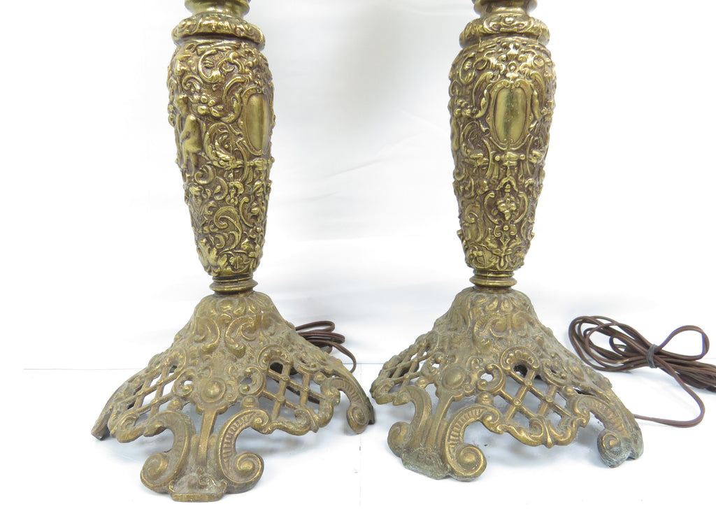 Antique Ainsley Ornate Brass Cherub Parlor Lamps - a Pair
