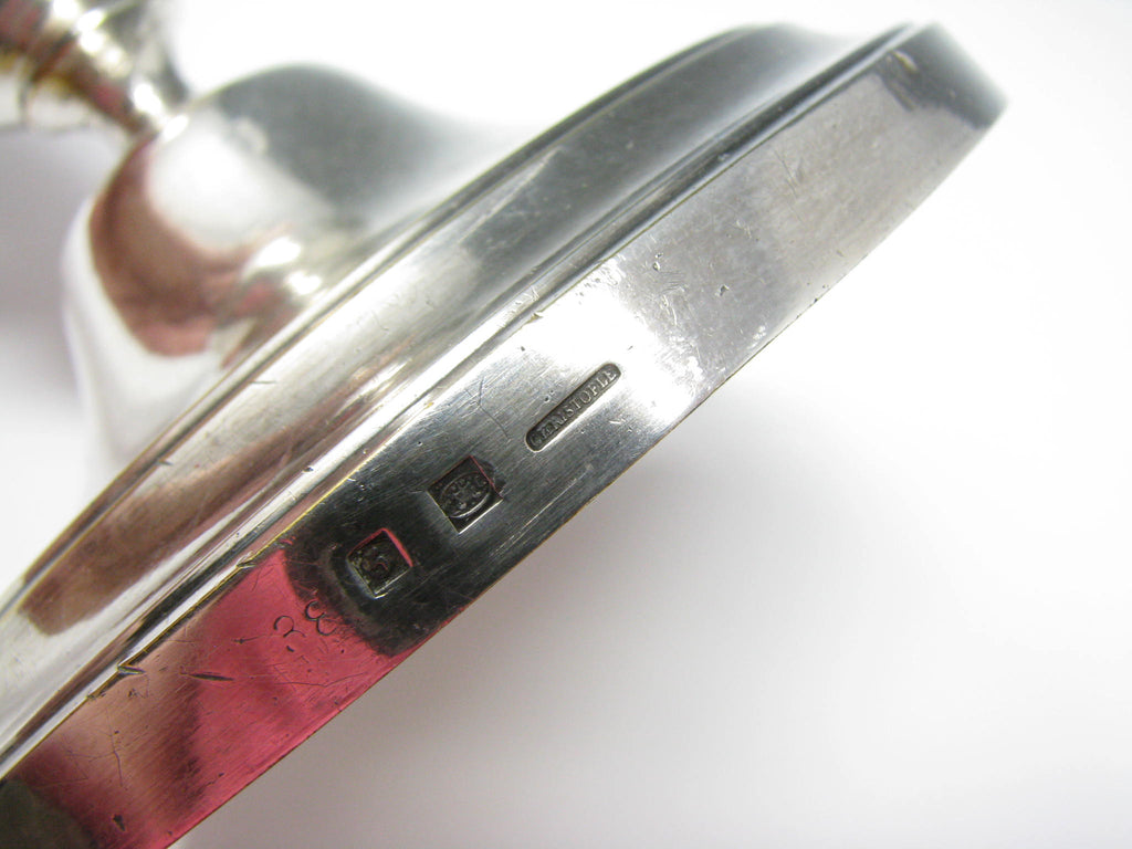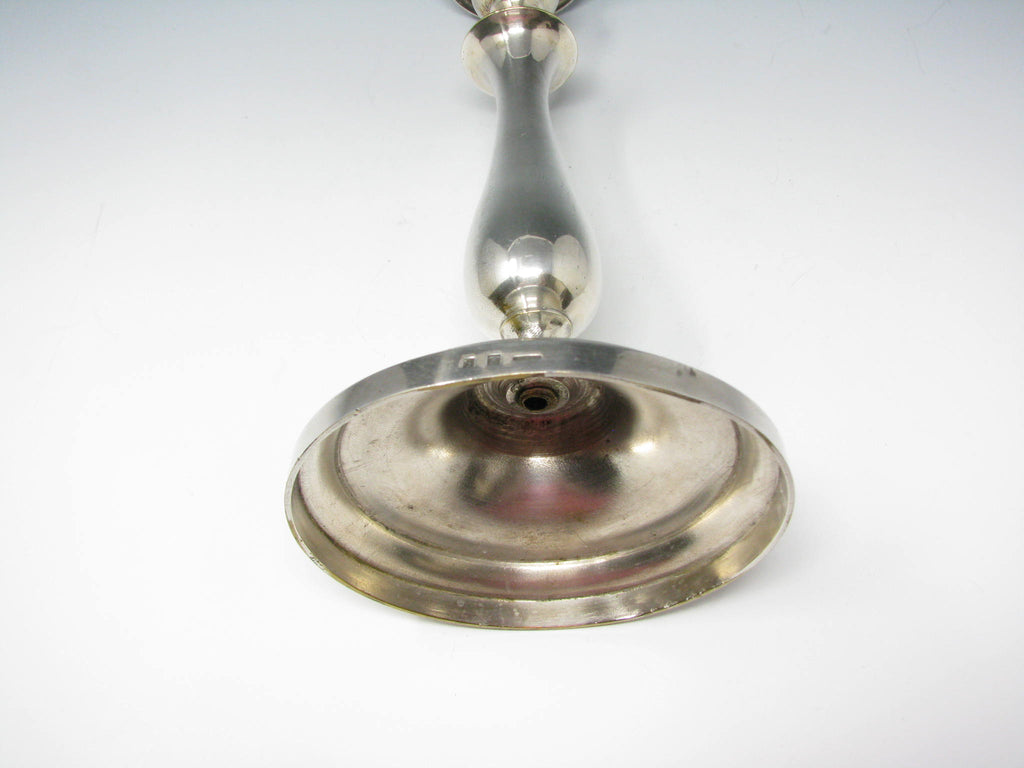 Antique Christofle silver plated metal candle holder. Made in France. Marks dates this item pre-1935 (1862-1935; CC scale mark).