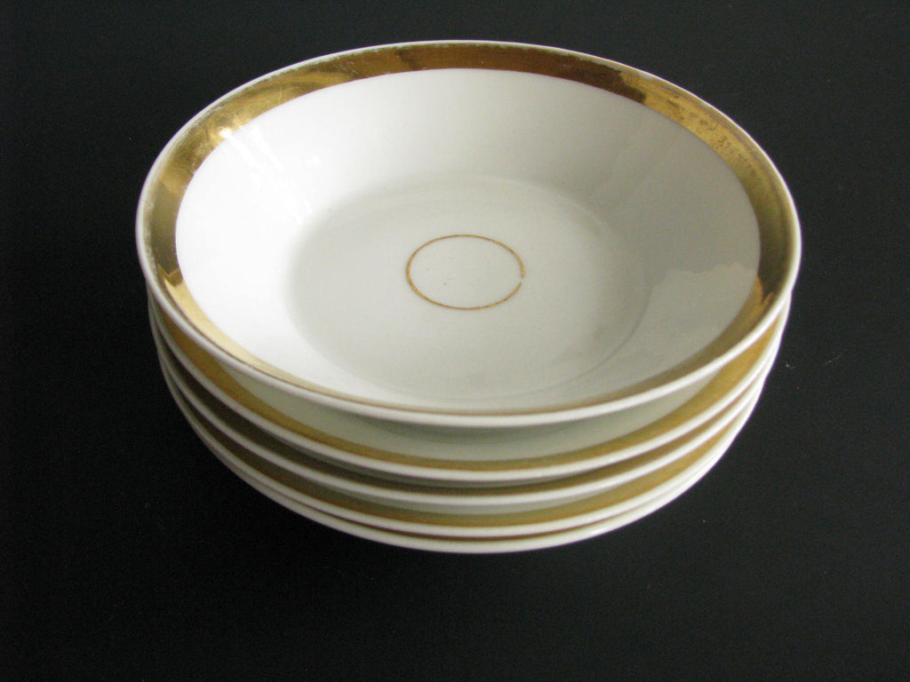 Antique set of 8 Haviland Limoges porcelain mix match Wedding Ring small bowls with gold trim. Smaller bowl marks date these from 1894-1931. Larger bowls were made in 1880s.