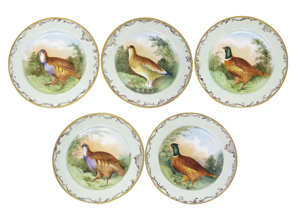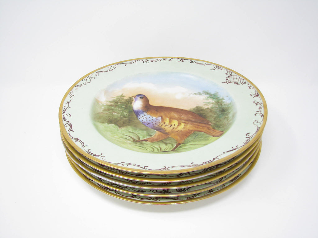 Antique Jean Pouyat JPL Limoges France Hand-Painted Plates with Game Birds - Set of 5
