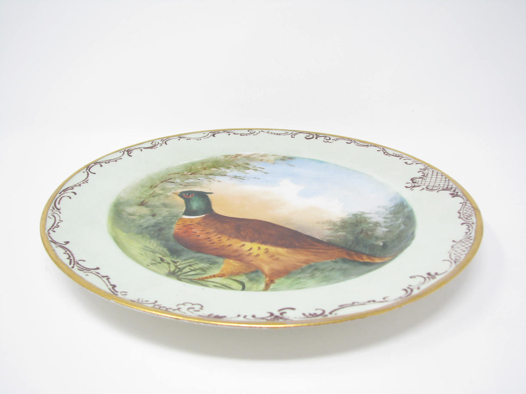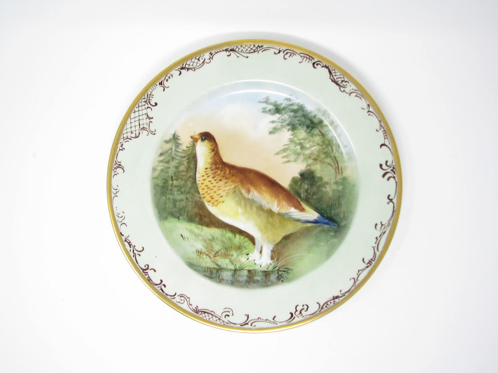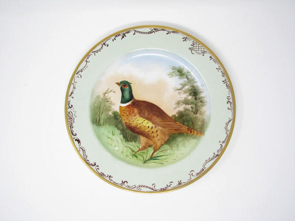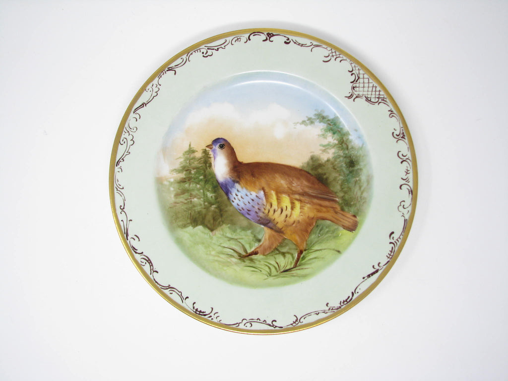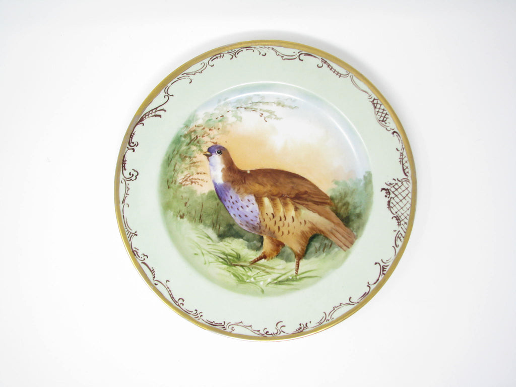 Stunning antique Jean Pouyat Limoges (JPL) France hand-painted game bird porcelain plates with gold trim. Set includes 5 uniquely painted game birds. Green mark (1891-1932).