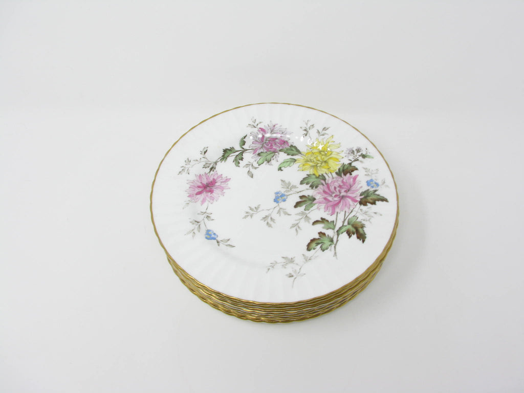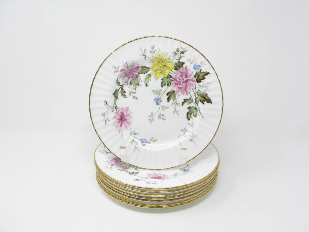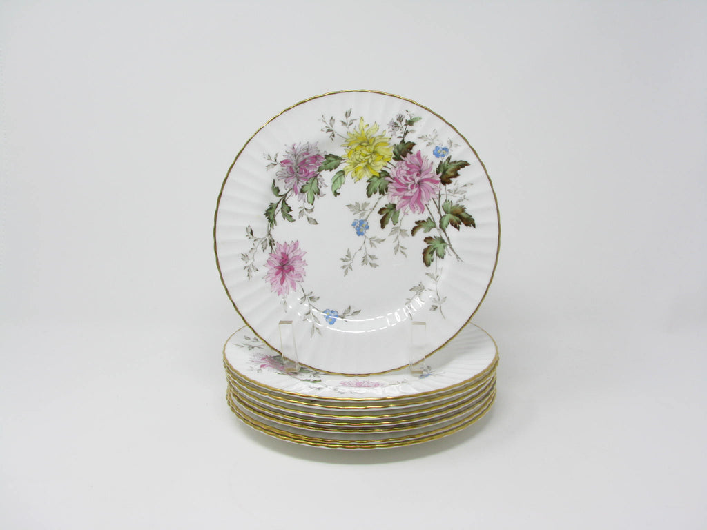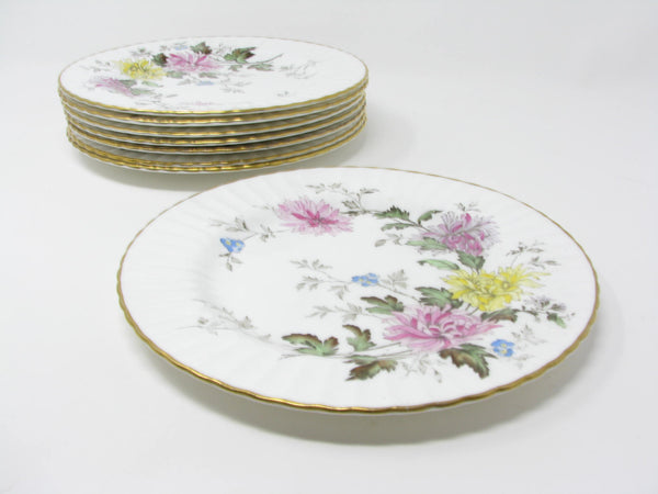 Antique Paragon England Autumn Glory Fine Bone China Salad Plates with Pink Yellow Flowers - Set of 8