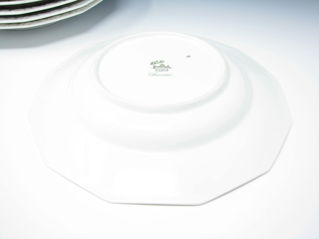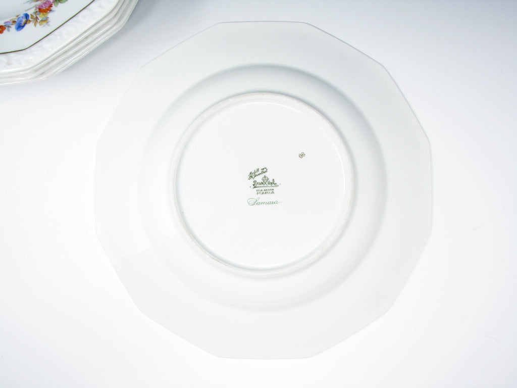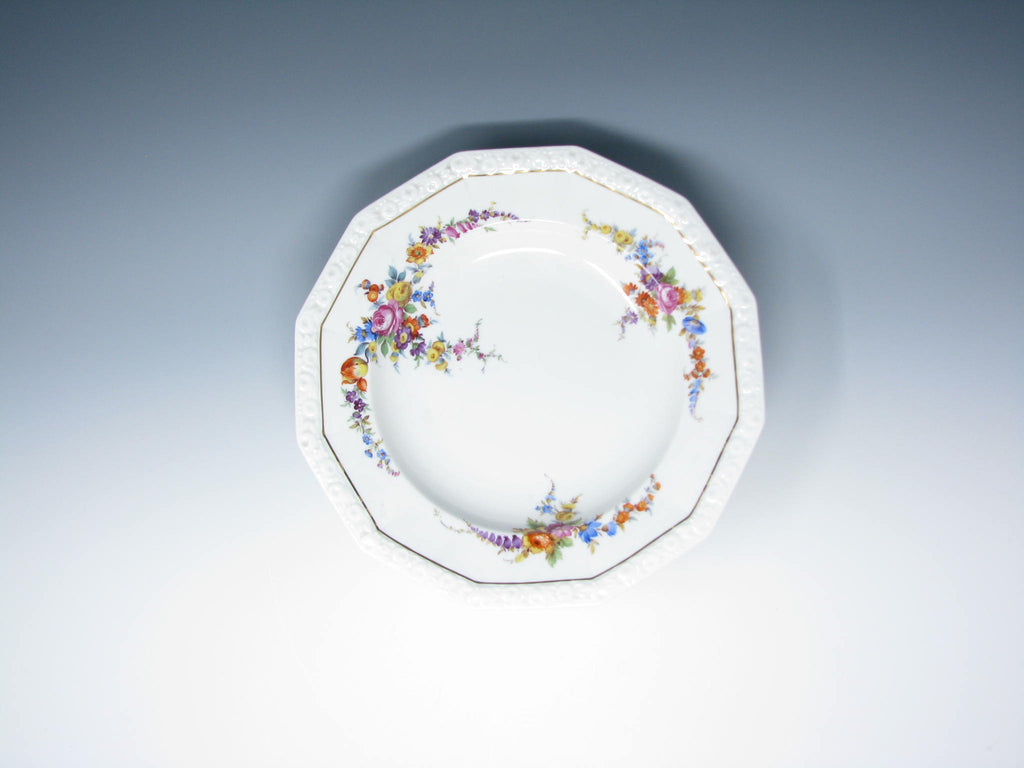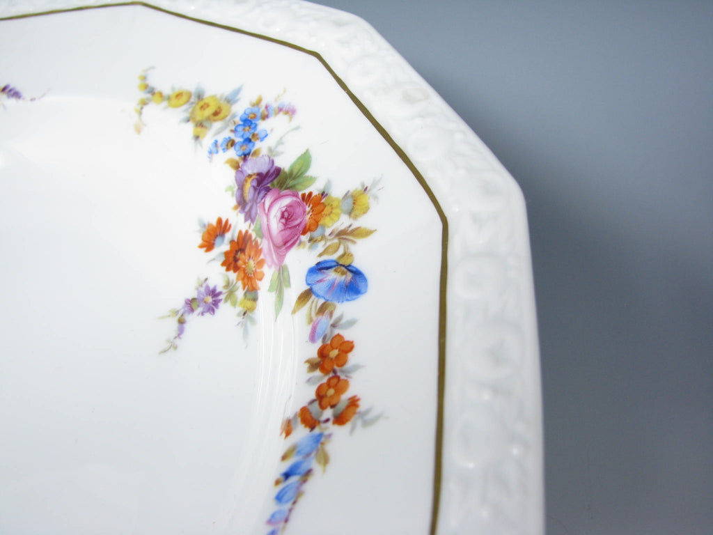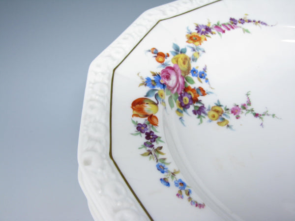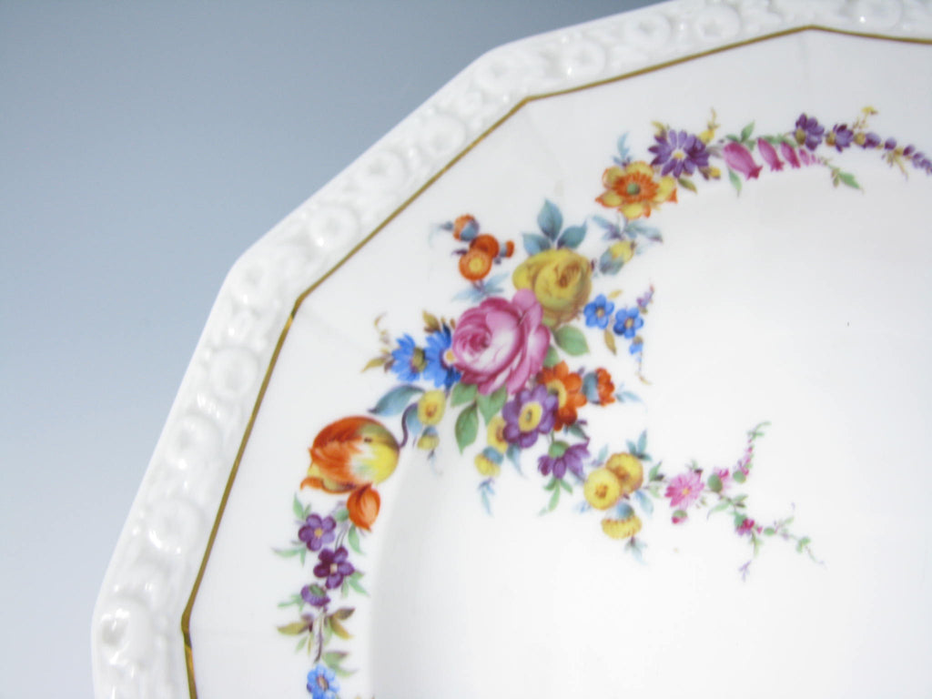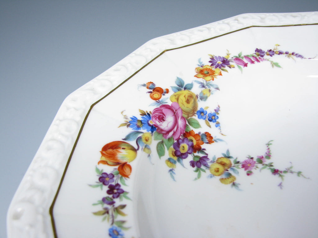 Antique set of 6 Rosenthal Samara large octagon rimmed bowls with hand-painted floral pattern and embossed floral rim. Designed by founder Philipp Rosenthal in the 1920s.