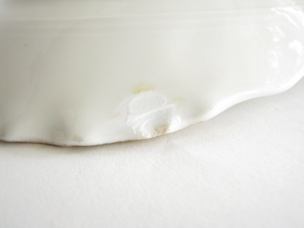Damage or Points of Notice: Overall excellent condition with one chip on underside of handle on large platter (please see photos). Nearly unnoticeable when in use