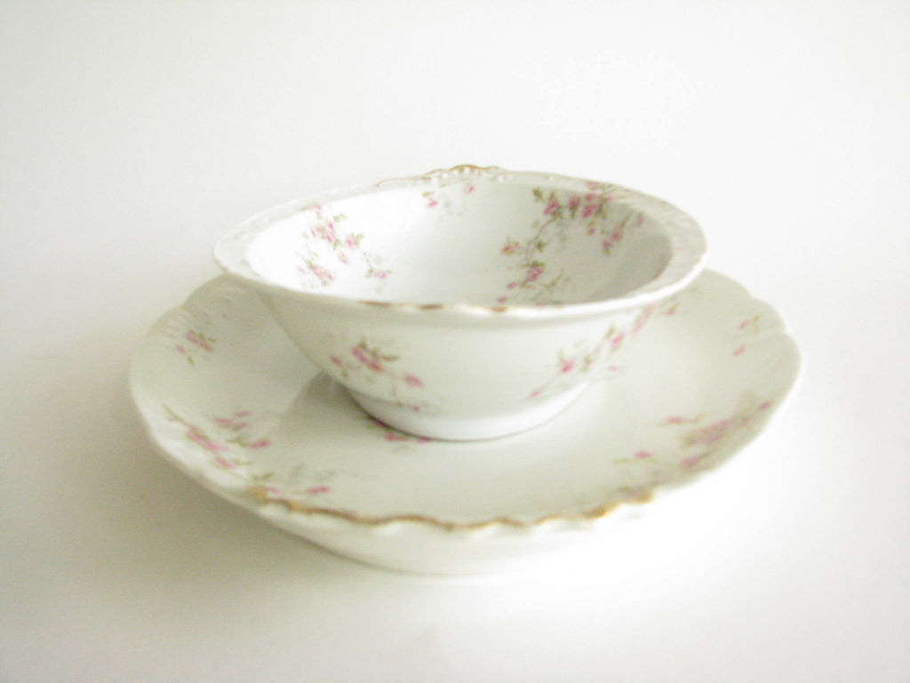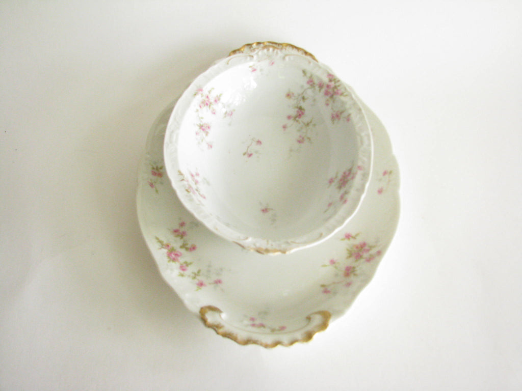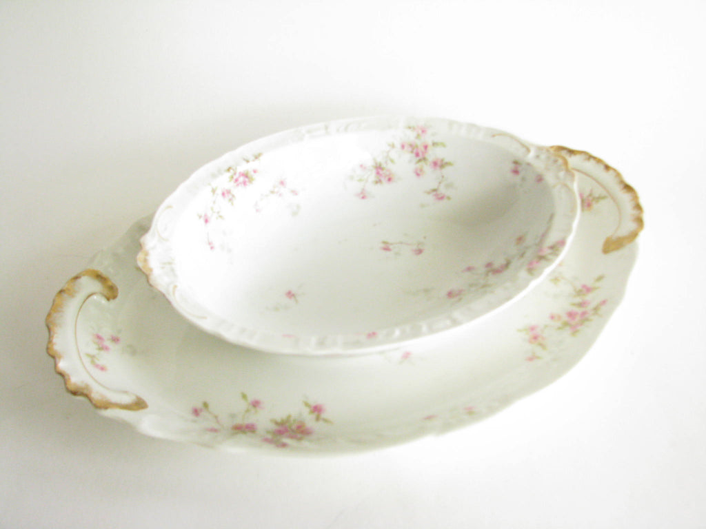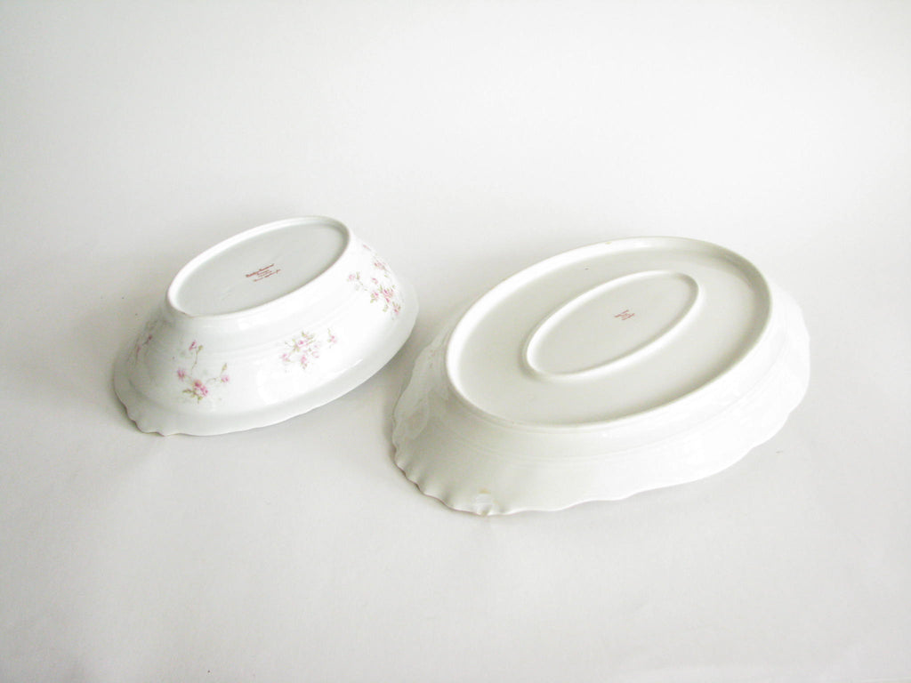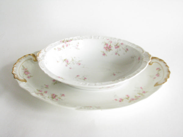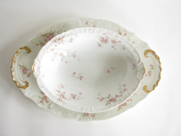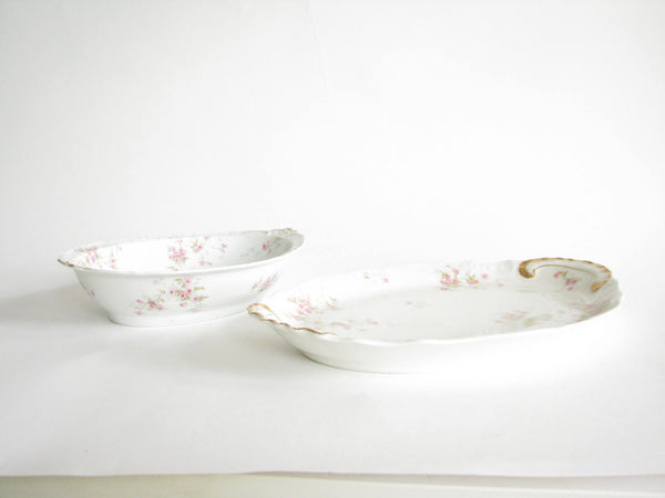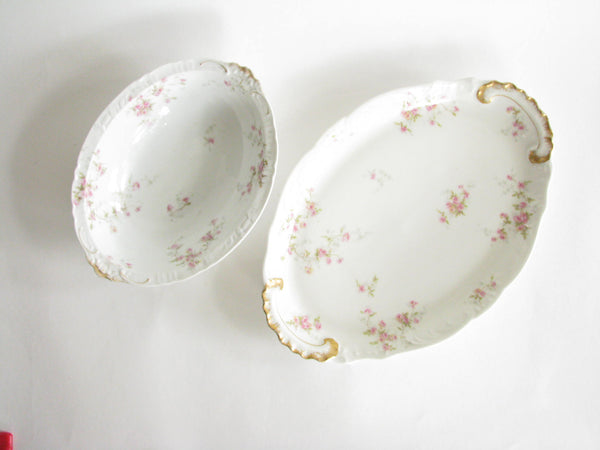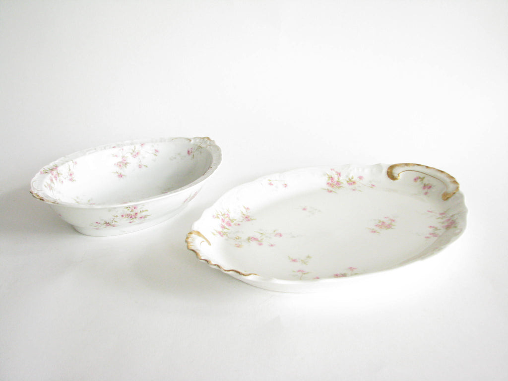 Antique Theodore Haviland Limoges Hand-Painted Floral Platter and Serving Bowl - 2 Pieces