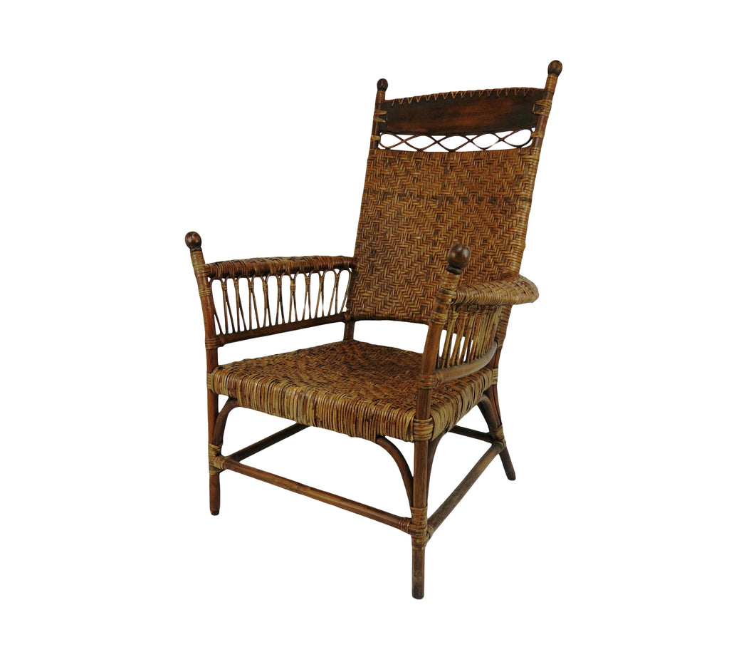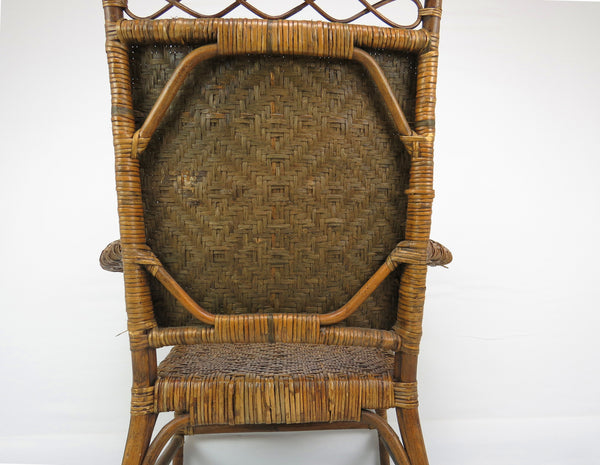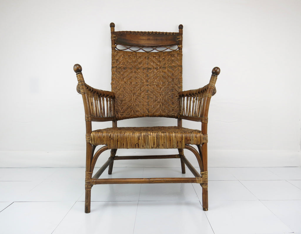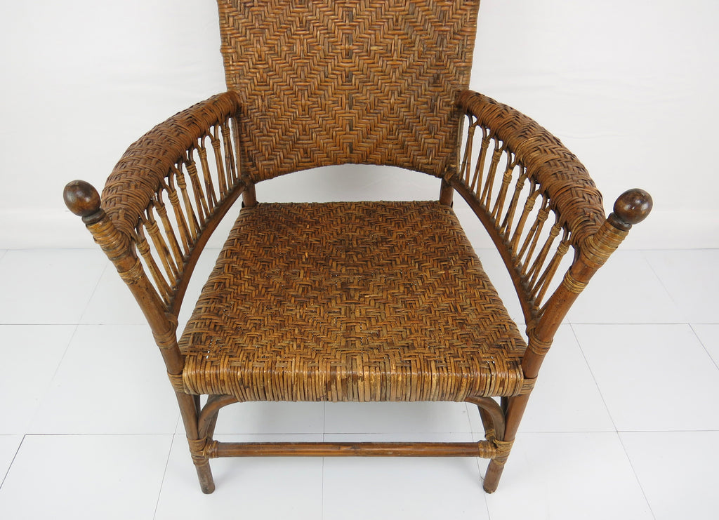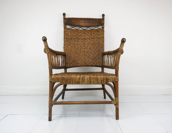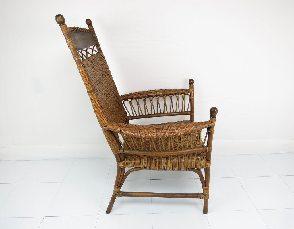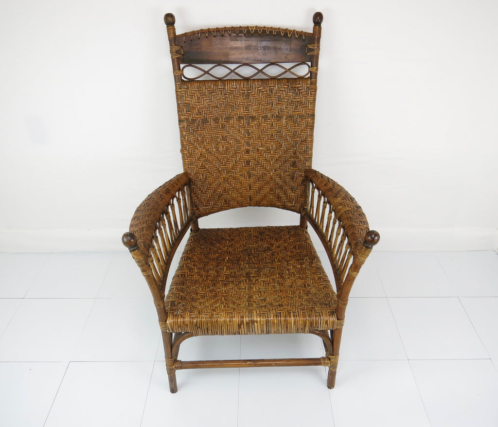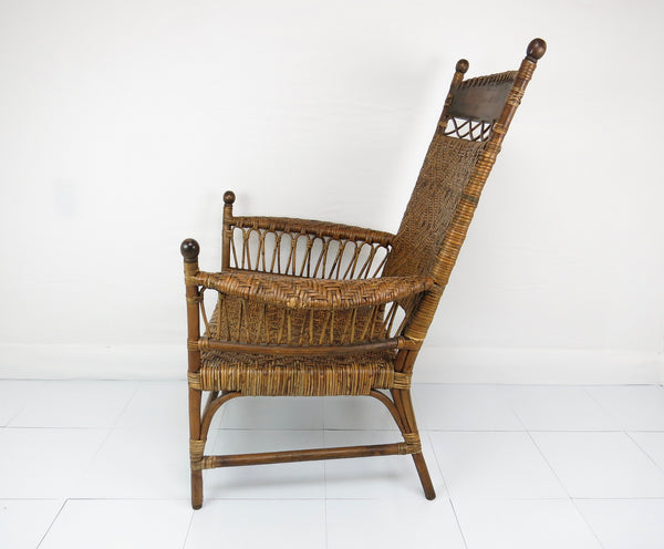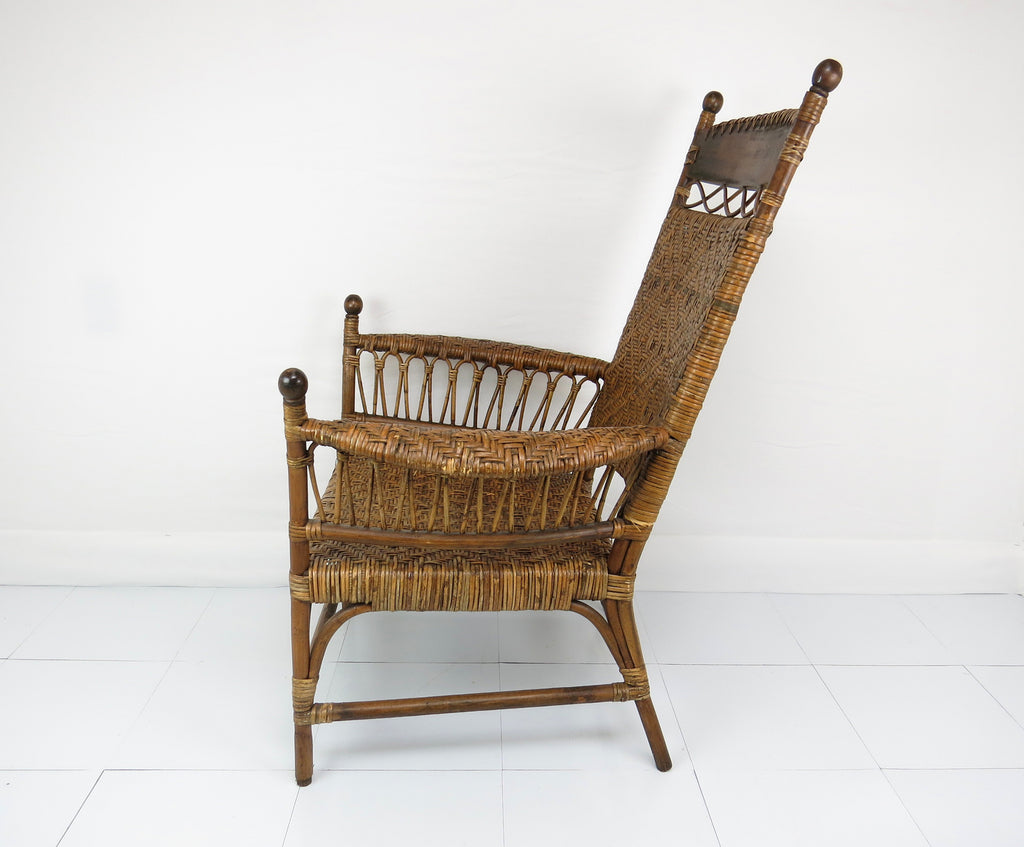 Antique Old Hickory Style Victorian Sculptural Stick and Ball Bentwood and Cane Lounge Chair