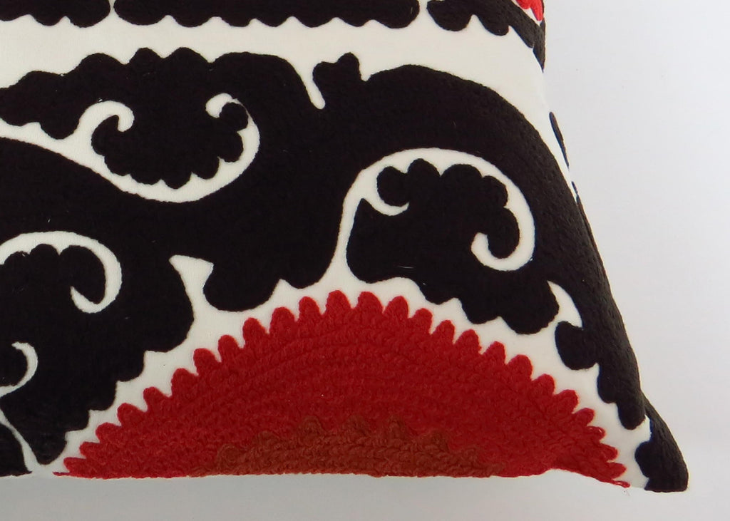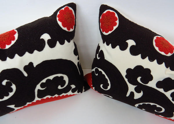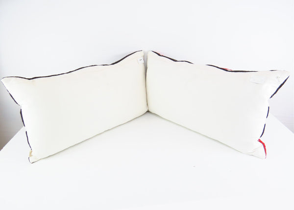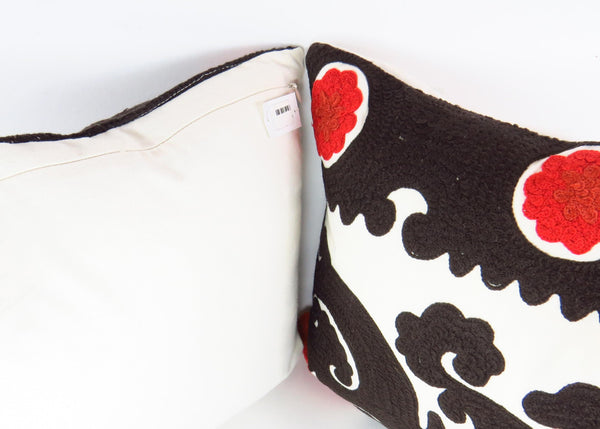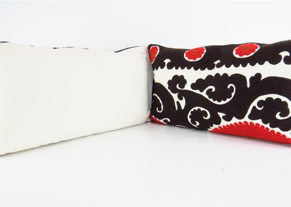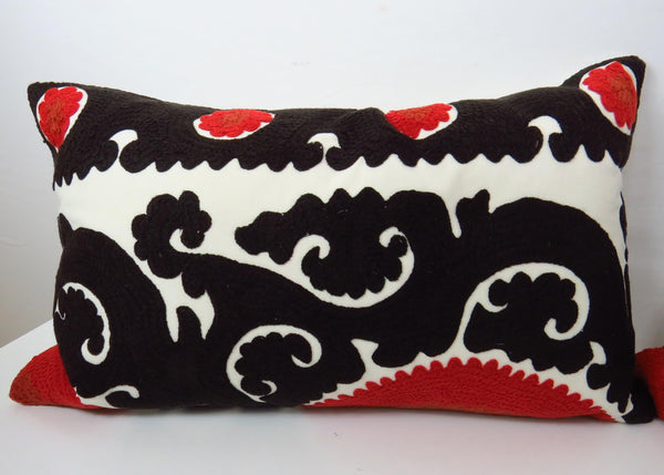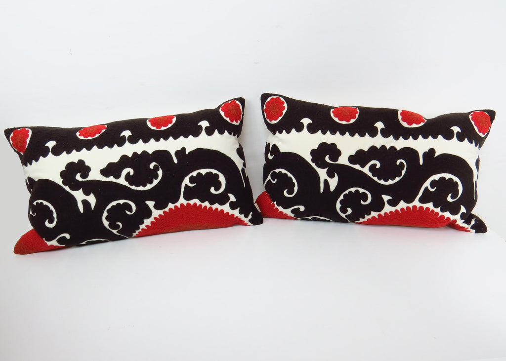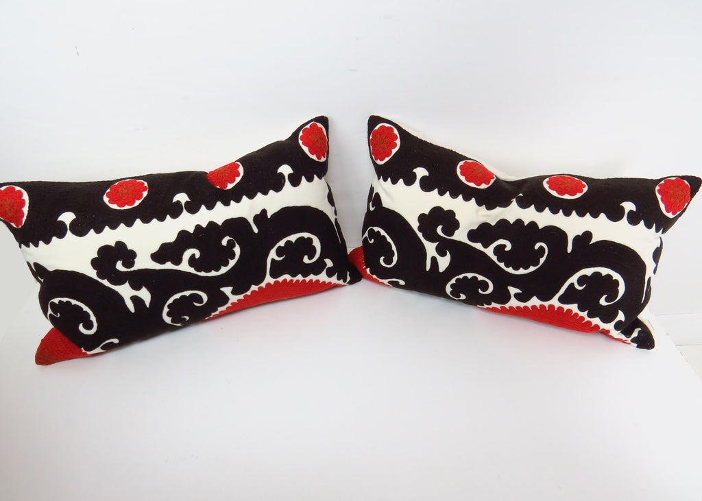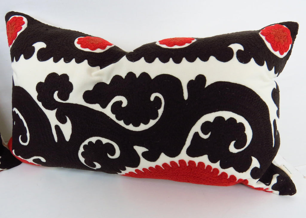 Arhaus Red Uzbek Samarkand Suzanni Cotton Lumbar Pillows in Red and Black - 2 Pieces