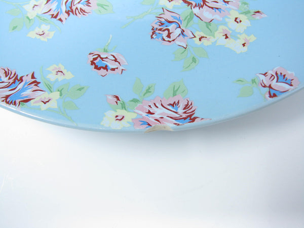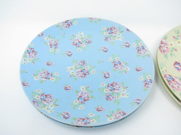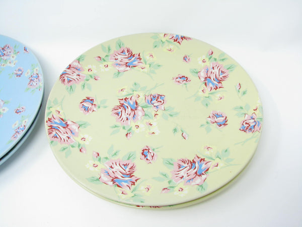 Contemporary Turquoise and Yellow Salad Plates with Floral Chintz Decal Design - 4 Pieces
