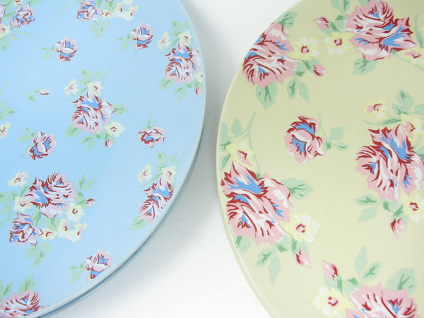 edgebrookhouse - Contemporary Turquoise and Yellow Salad Plates with Floral Chintz Decal Design - 4 Pieces
