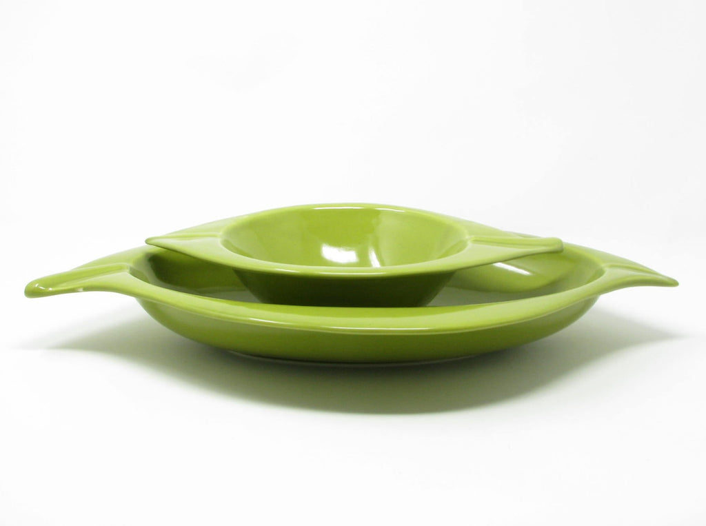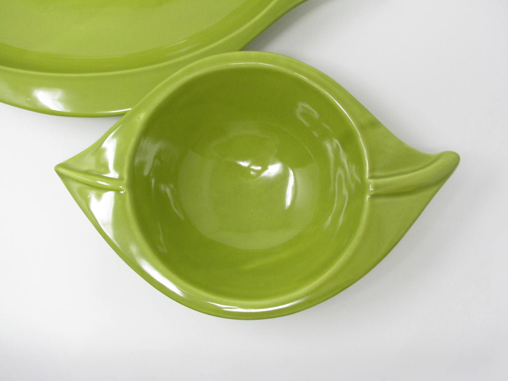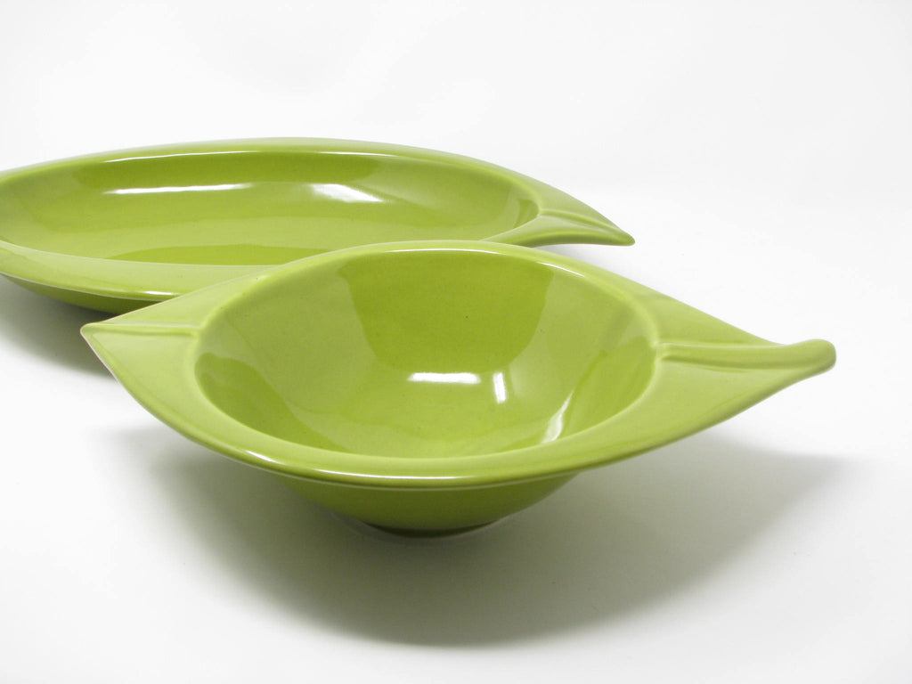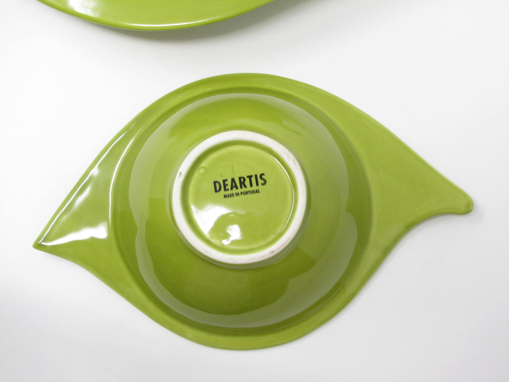 Deartis Portugal Pottery Serving Bowls in Green with Organic Leaf Shape - 2 Pieces