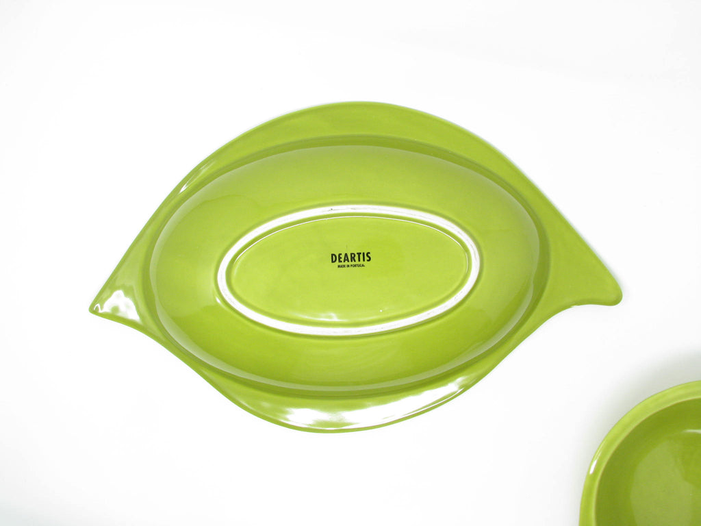 Set of 2 Deartis pottery serving bowls with organic leaf shape and in a beautiful green color. Made in Portugal.