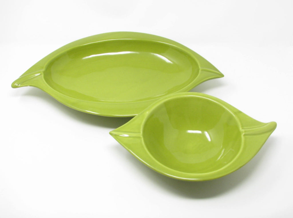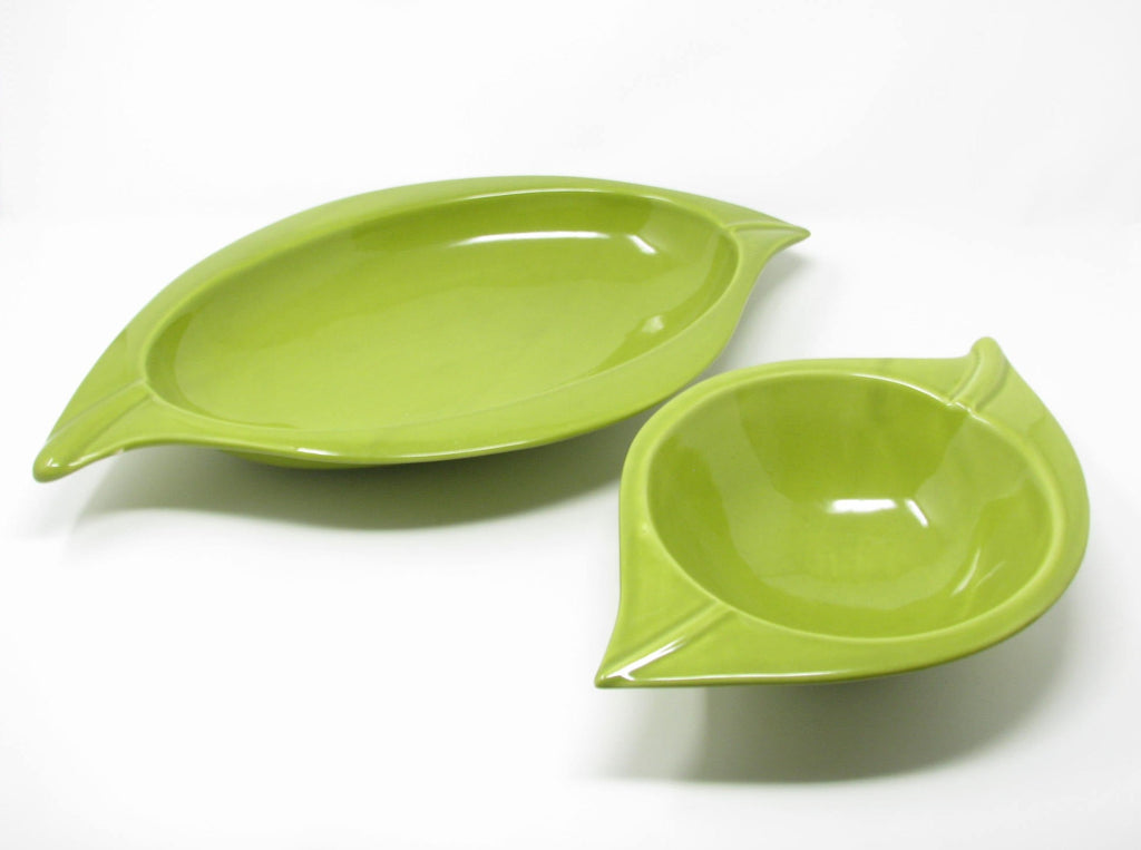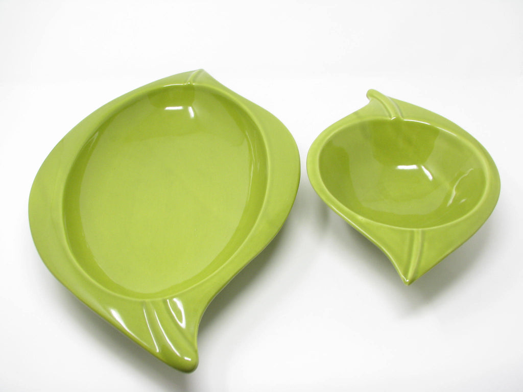 Damage or Points of Notice: Excellent condition appropriate with little to no use. Appears unused. One small chip along rim/leaf tip of larger bowl (please see photos). No other imperfections noted.