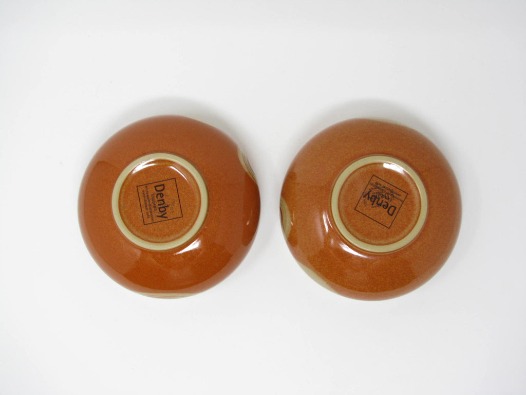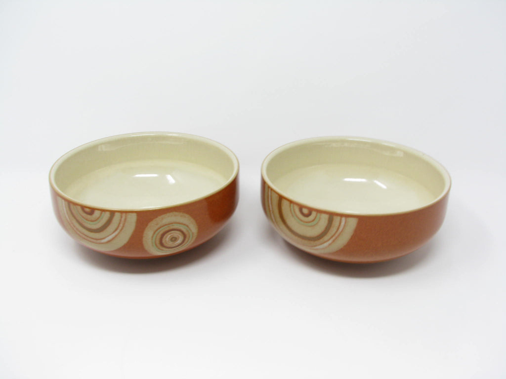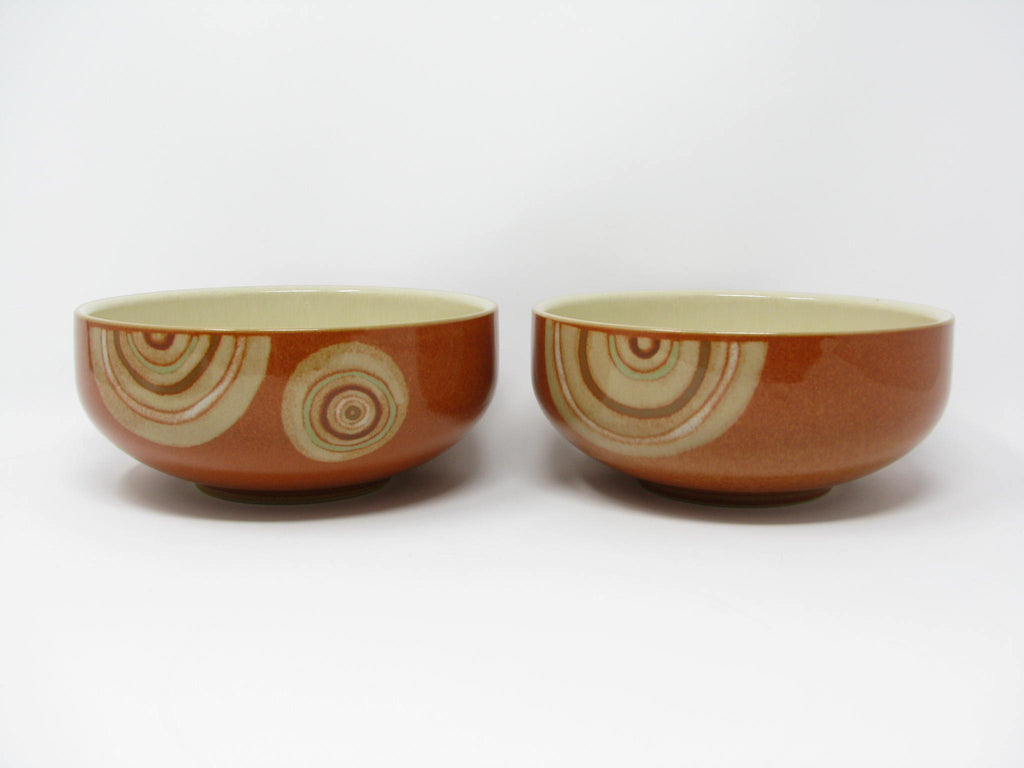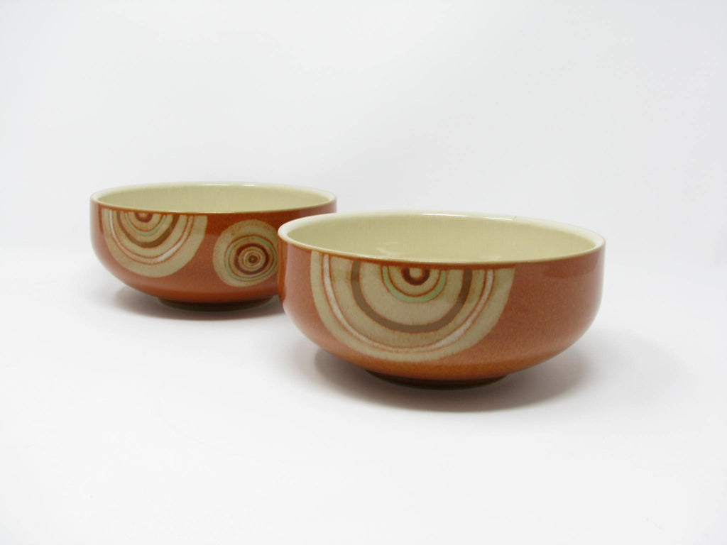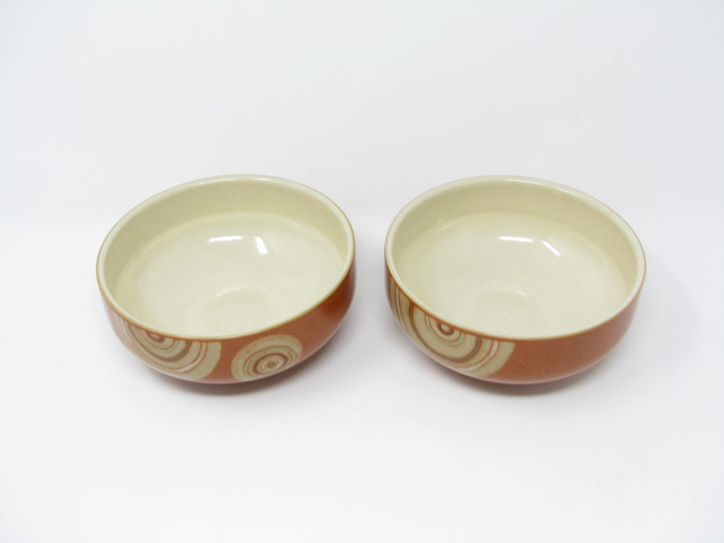 Denby Fire Chilli Stoneware Bowls with Rust Tan Swirl Design - 2 Pieces