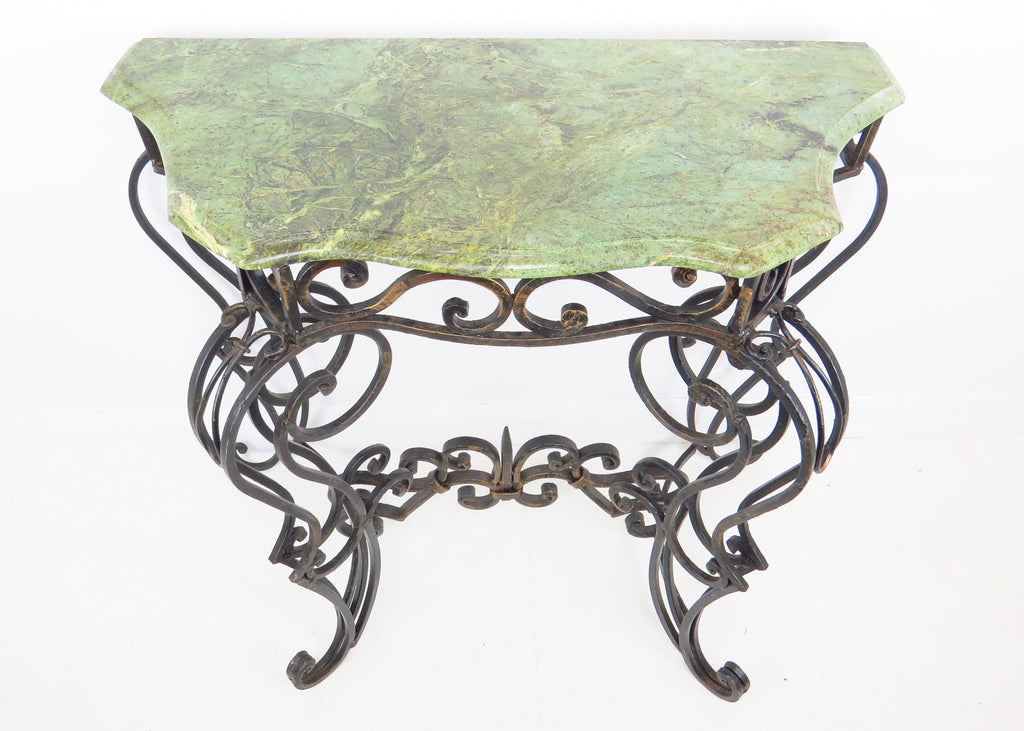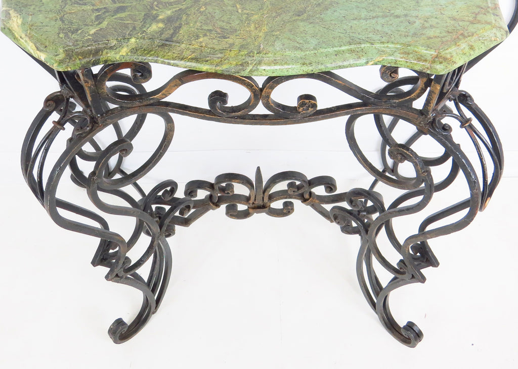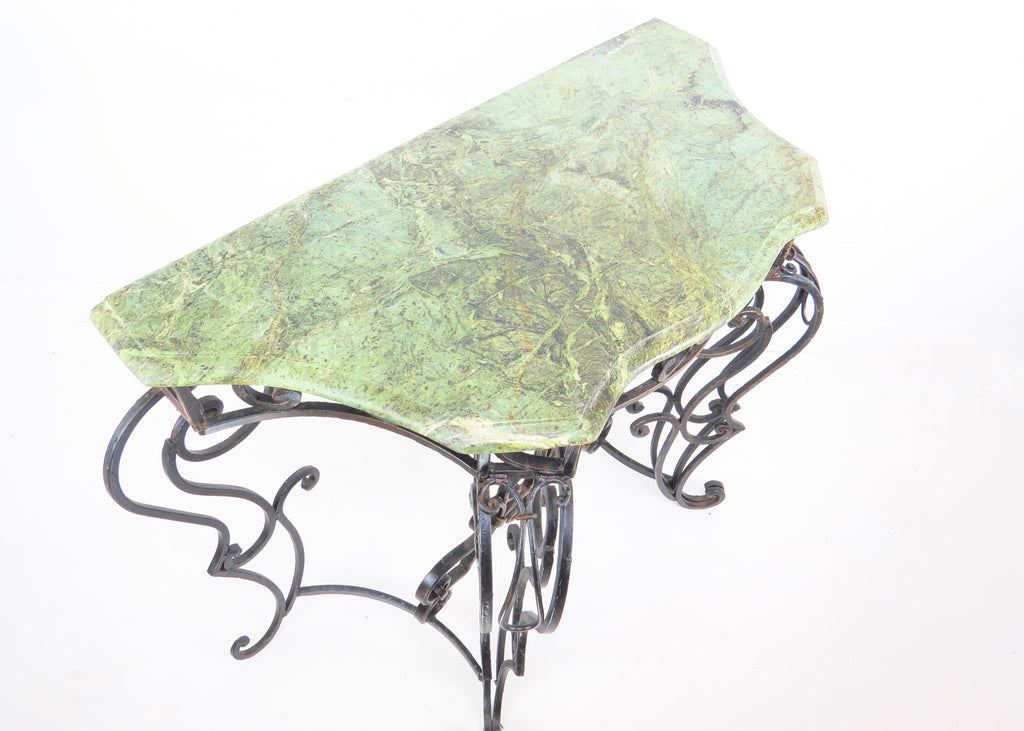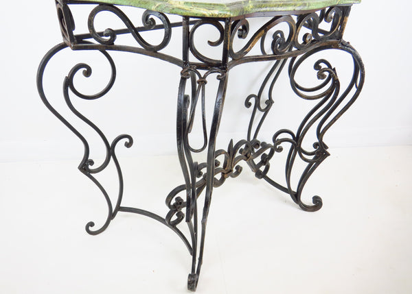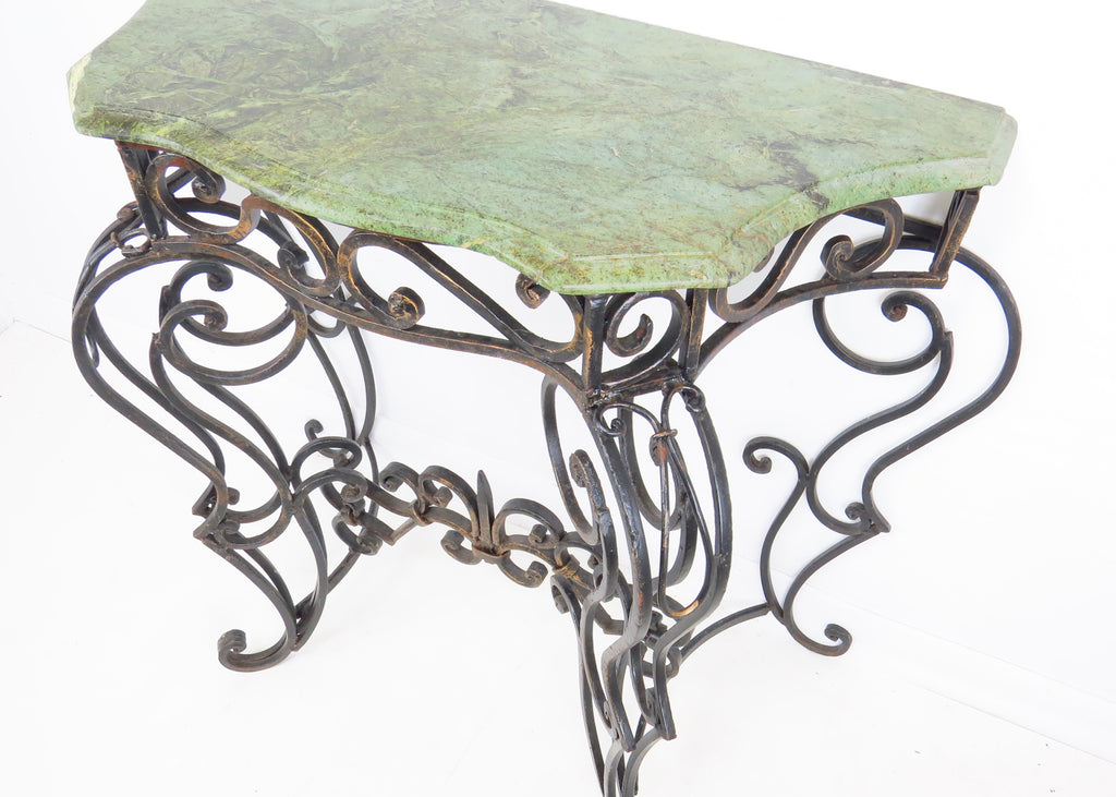 Early 20th Century French Iron Console Table With Jade Green Marble Top