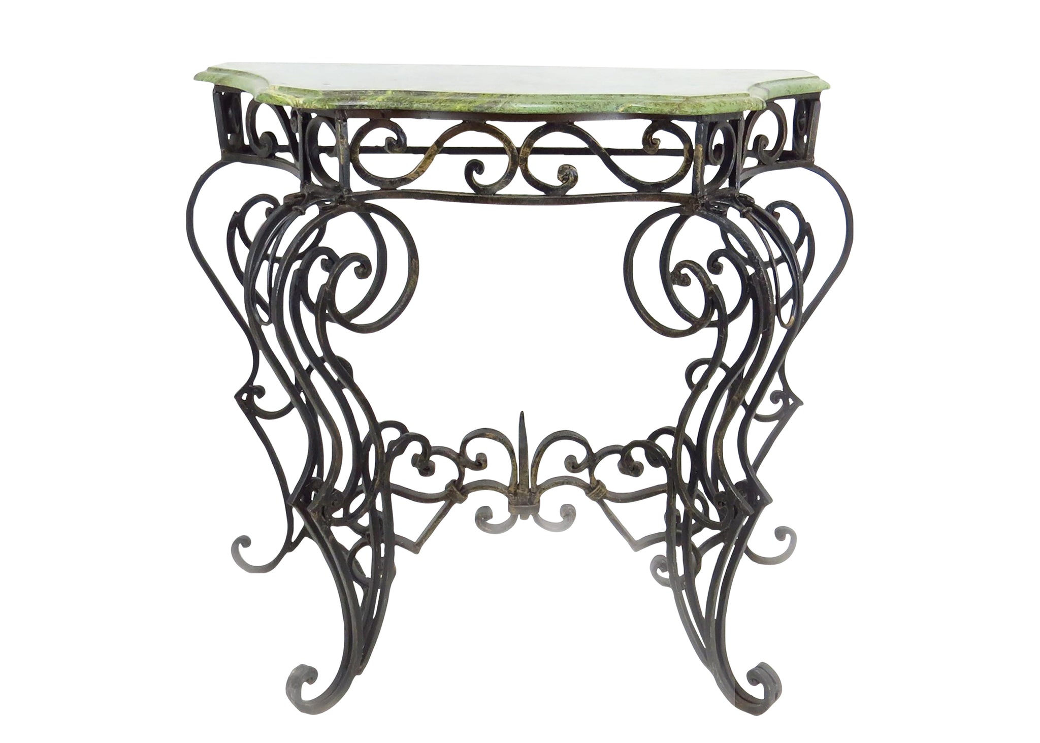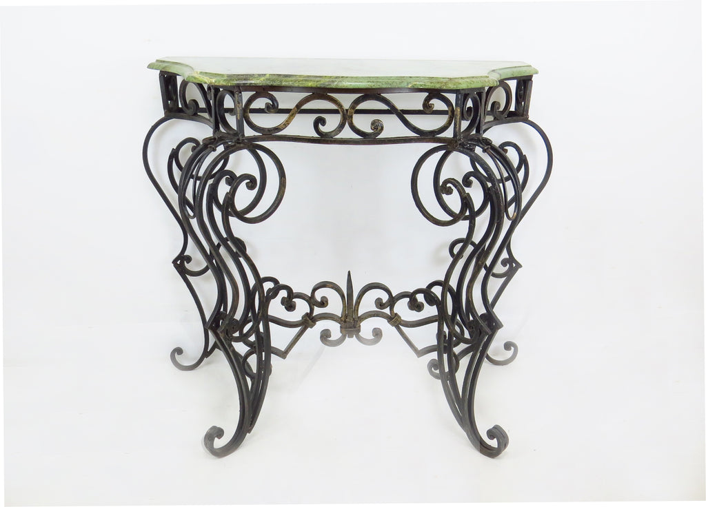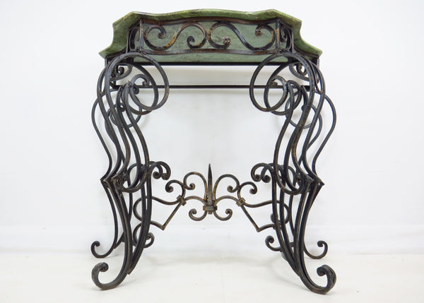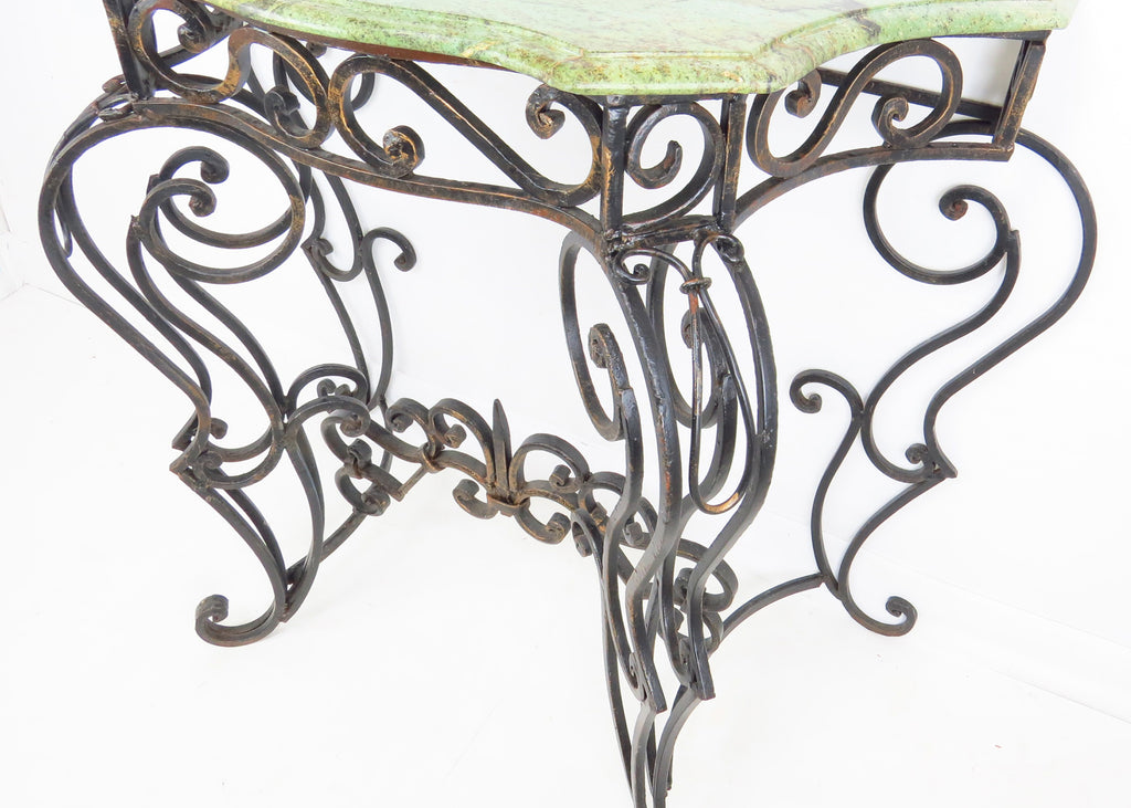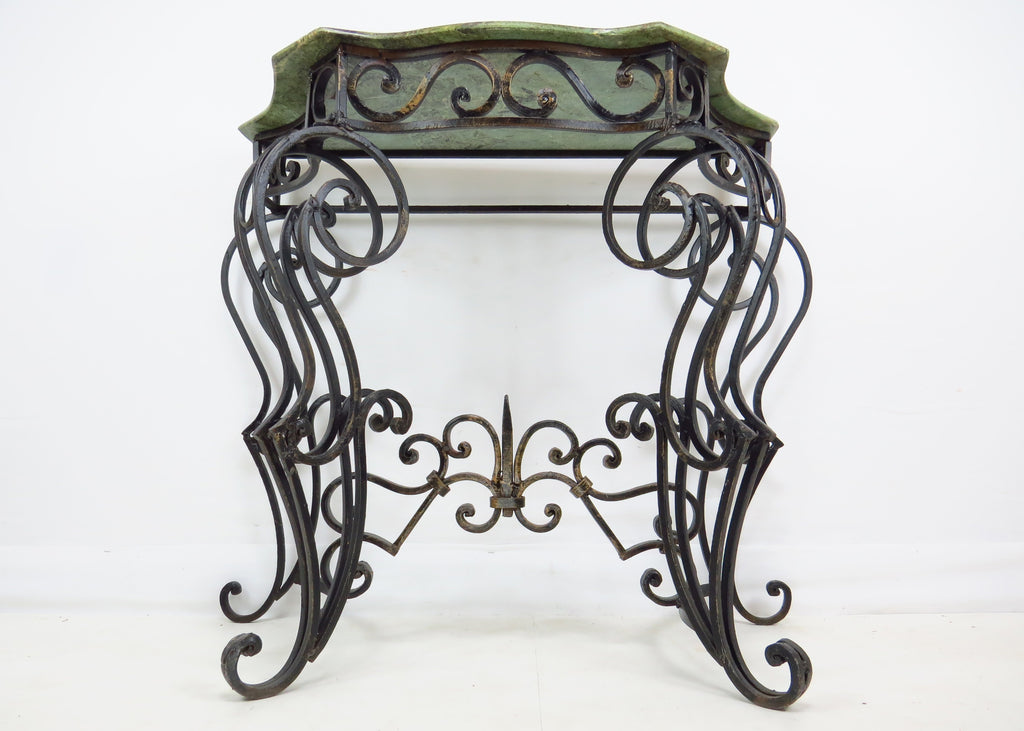 Early 20th Century French Iron Console Table With Jade Green Marble Top