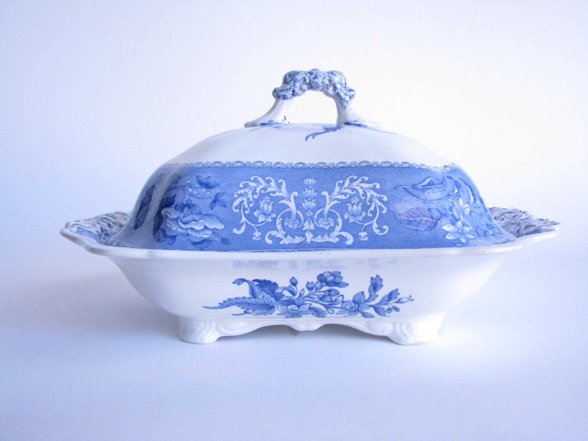 Early 20th Century Spode Camilla Blue and White Covered Serving Dish