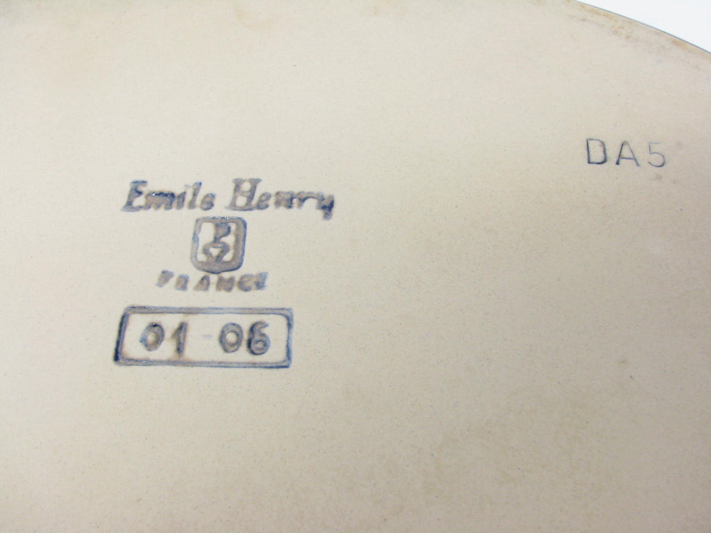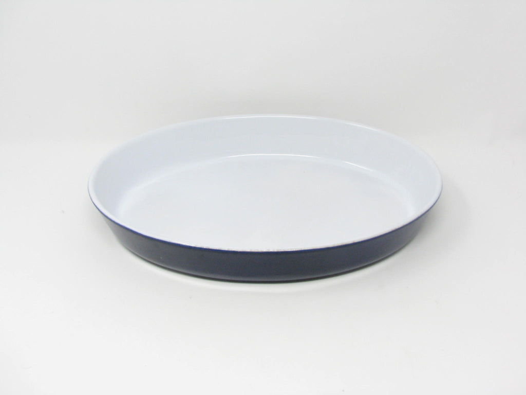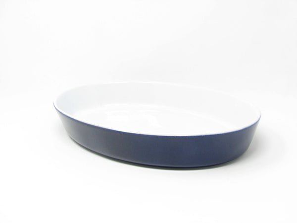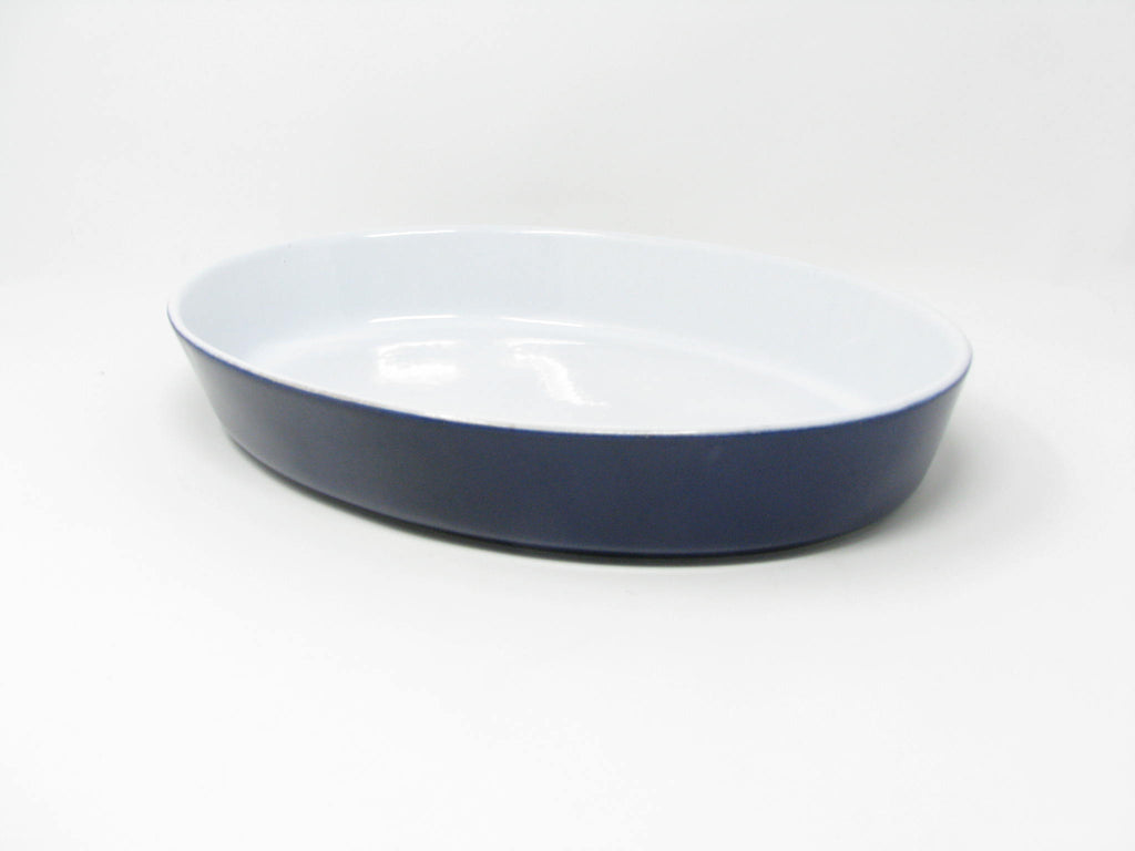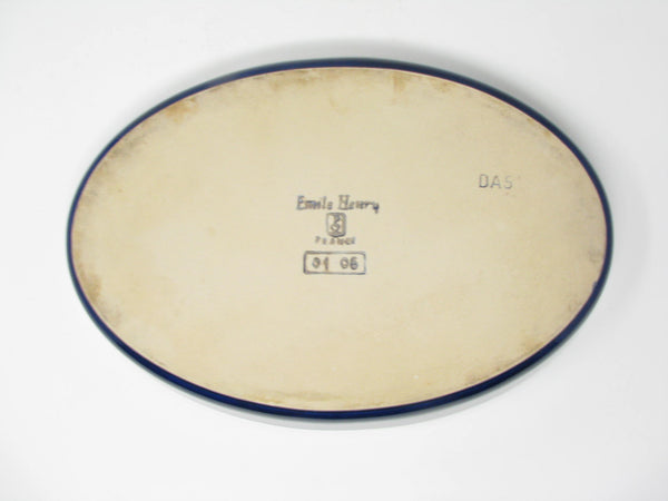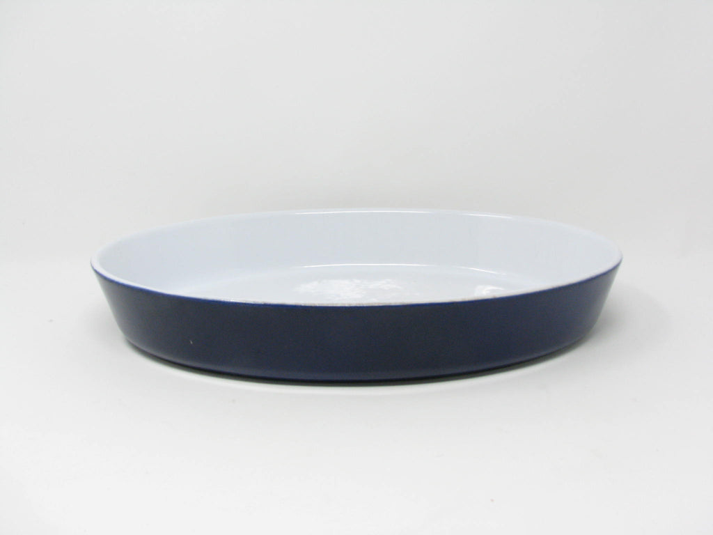 Large Emile Henry blue and white oval baking dish. Marked 'Emile Henry France 01-06 DA 5'.