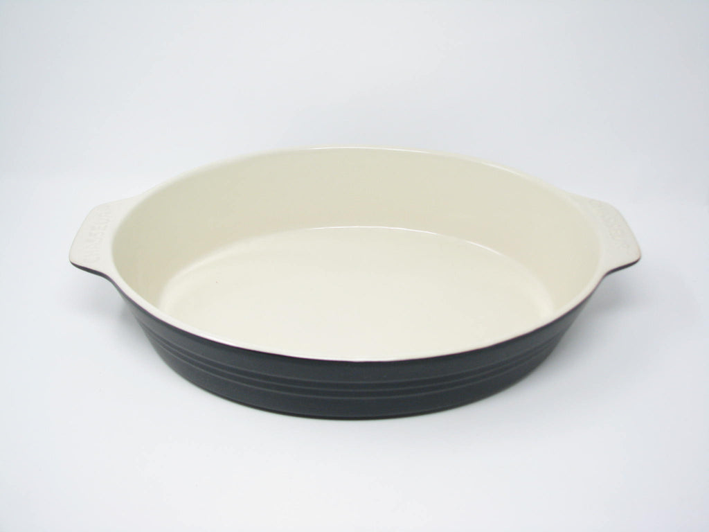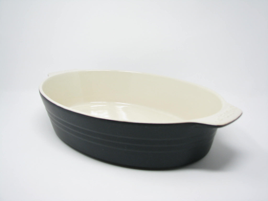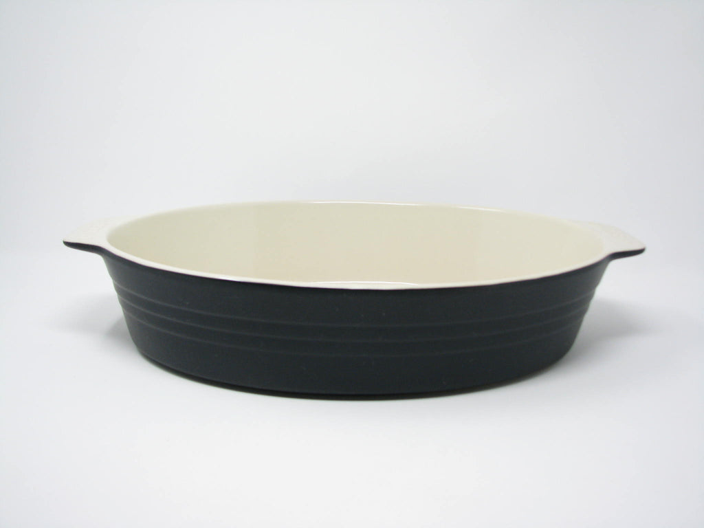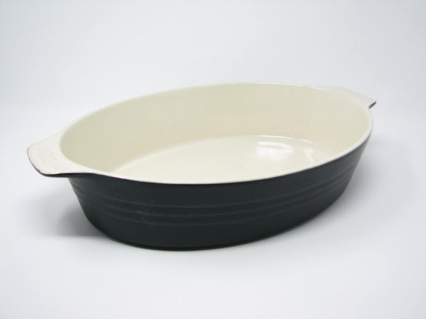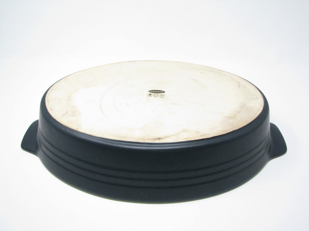 French Chasseur Large Matte Black and Ivory Ceramic Casserole Dish