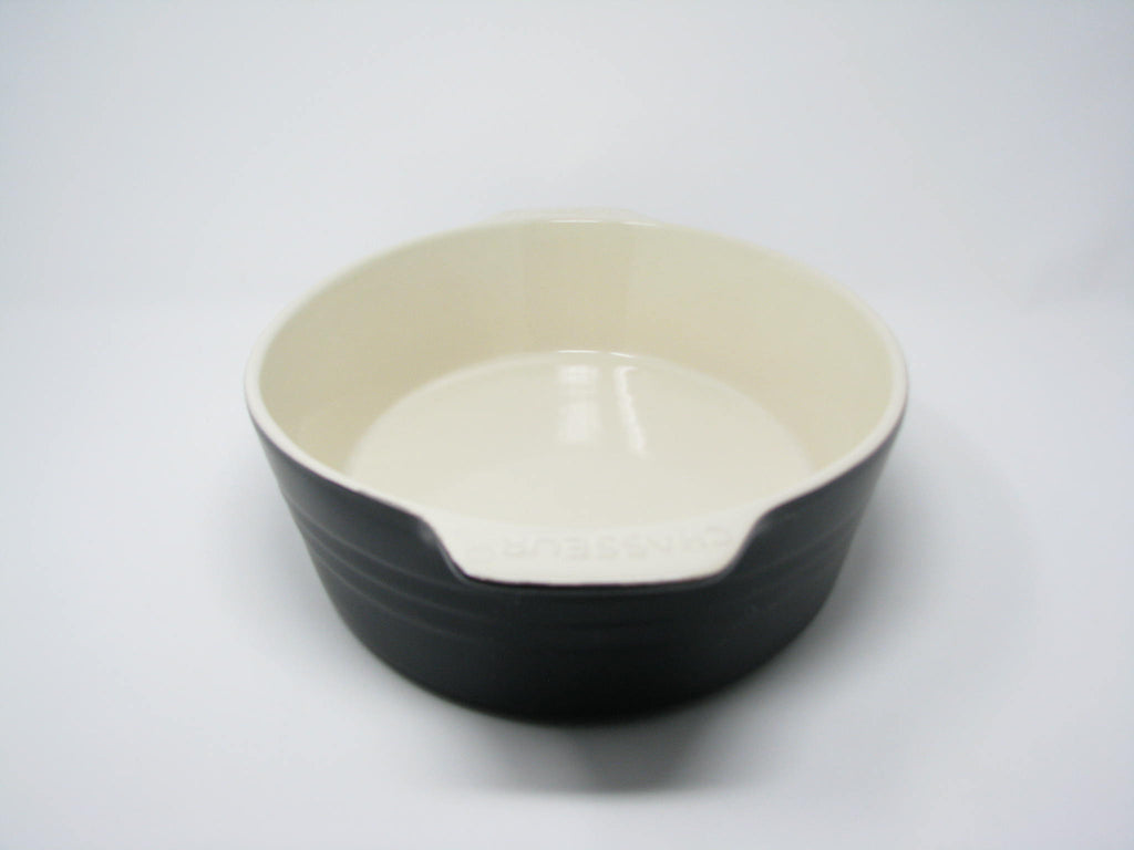 Large Chasseur matte black ceramic casserole dish with ivory interior. Made in France.