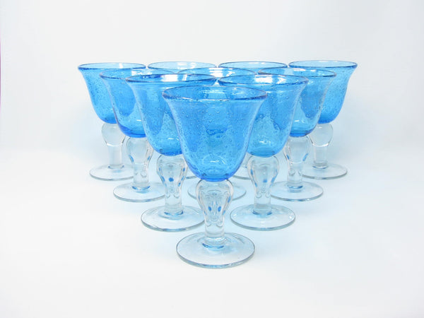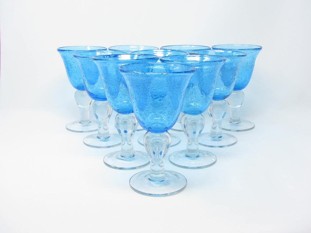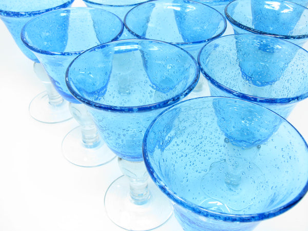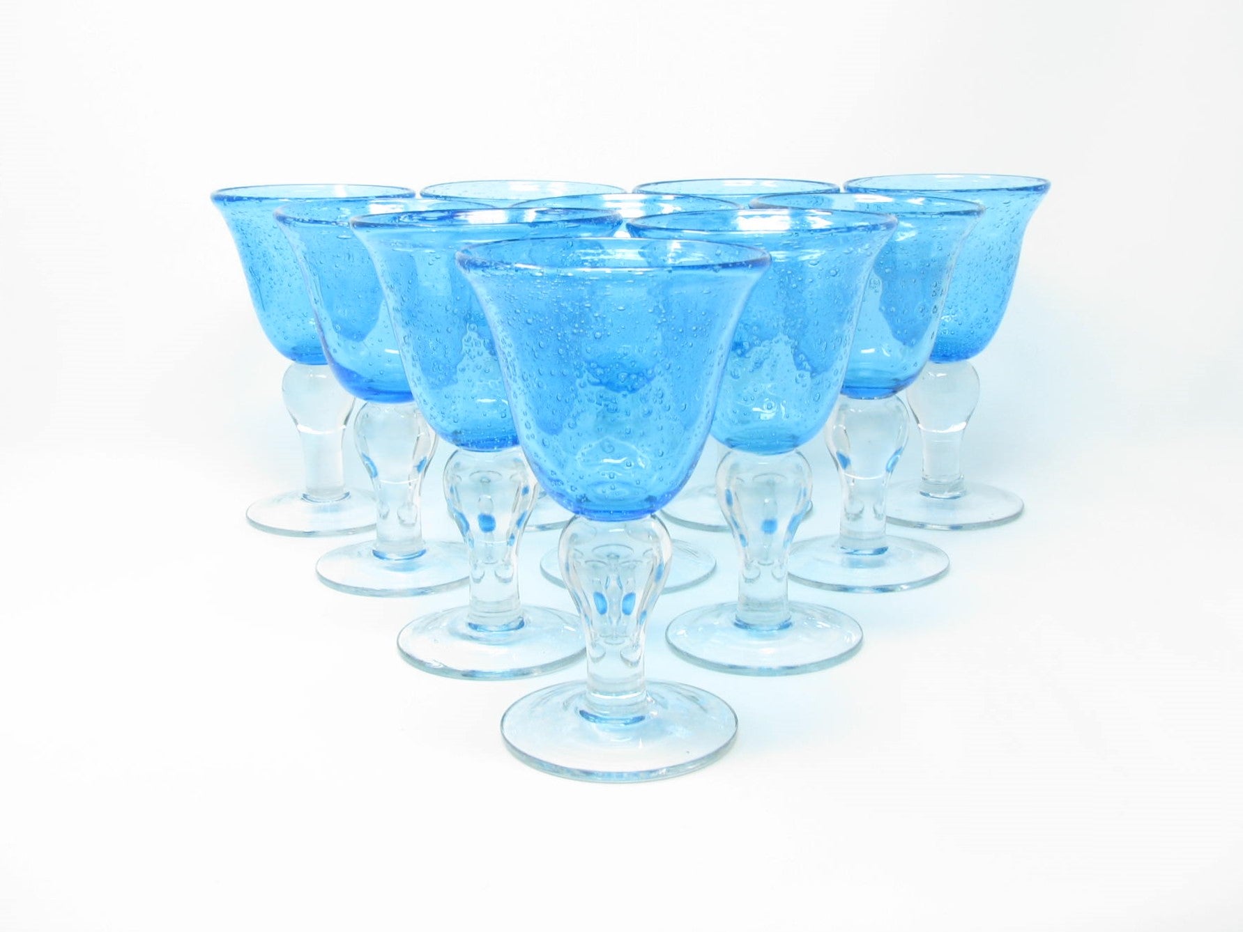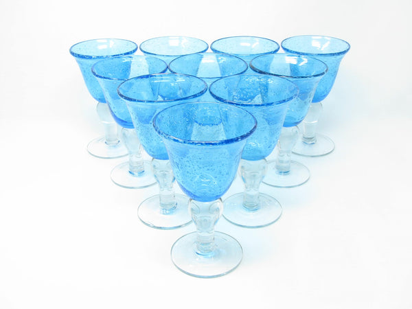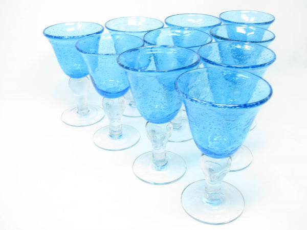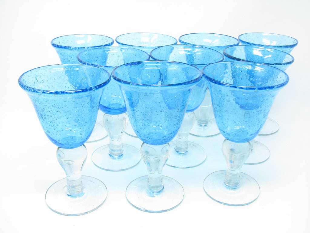 Hand Blown Iris Aqua Turquoise Bubble Glass Wine Goblets by Artland - 10 Pieces