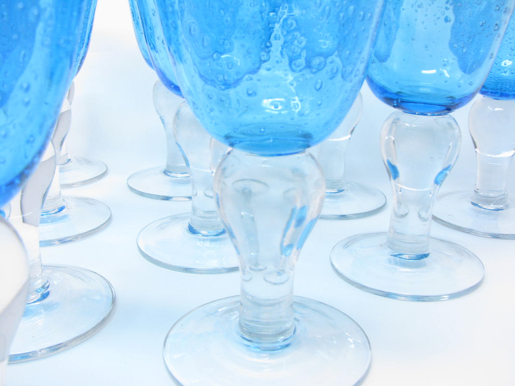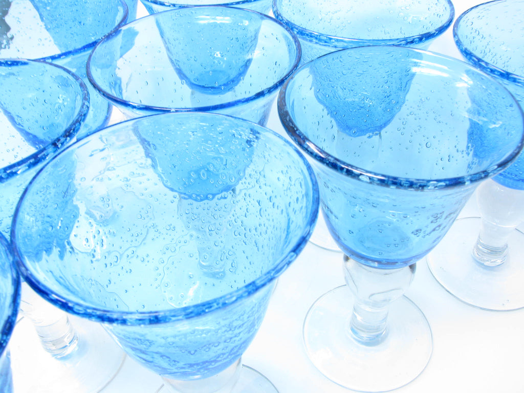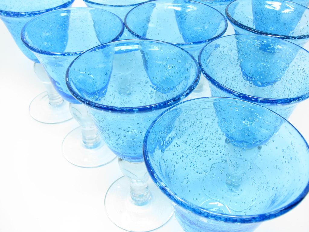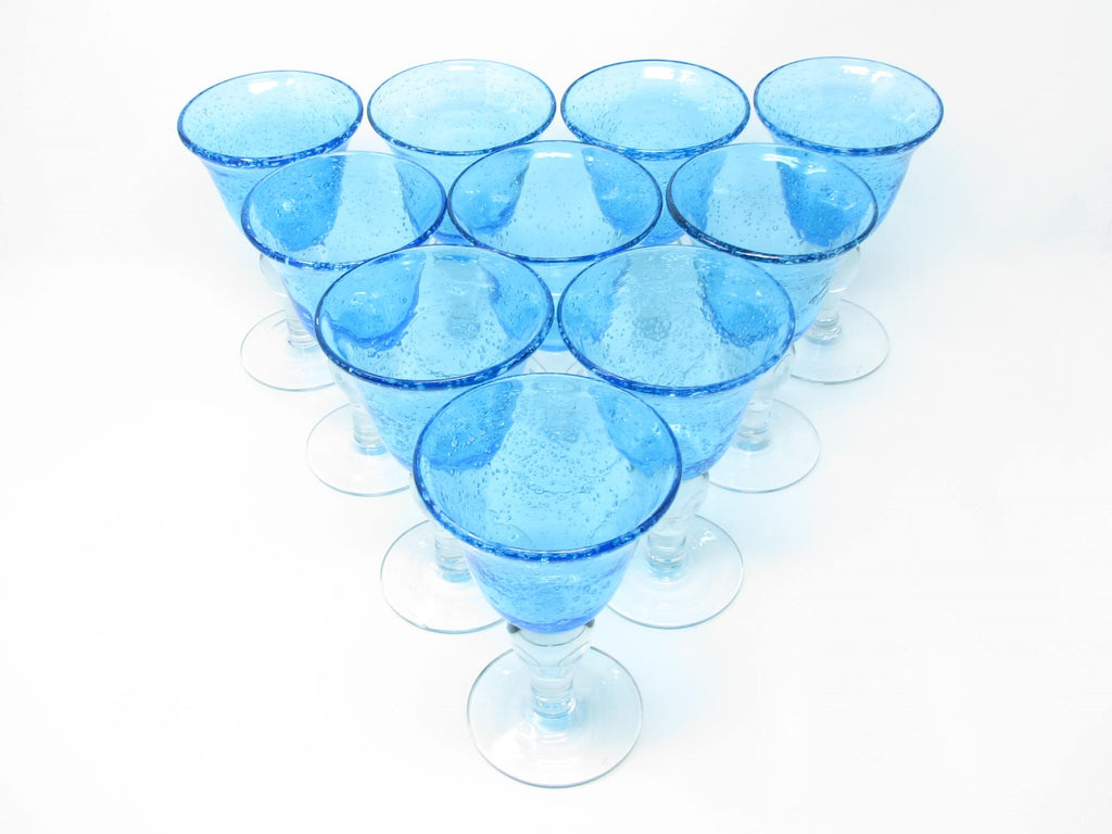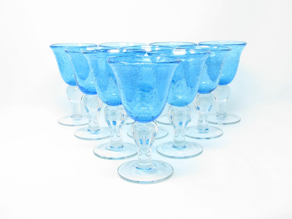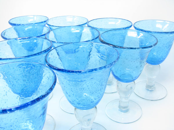 Hand Blown Iris Aqua Turquoise Bubble Glass Wine Goblets by Artland - 10 Pieces