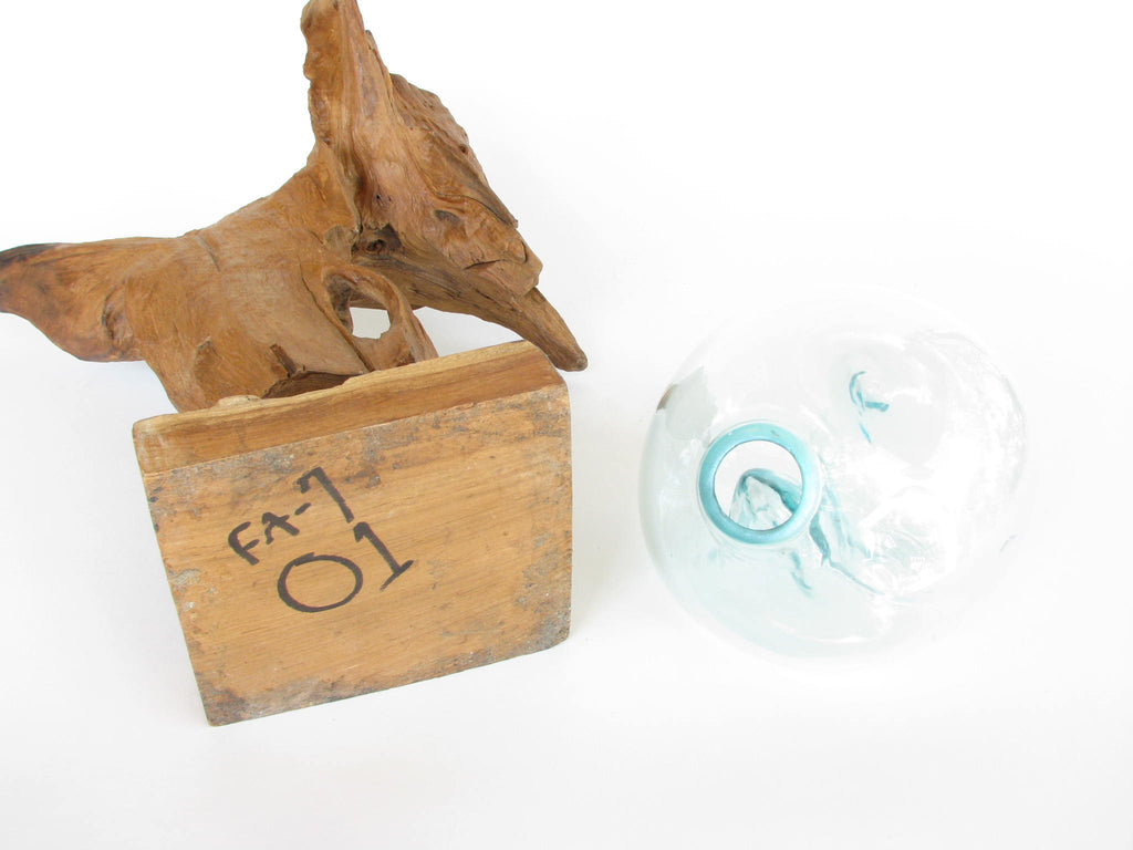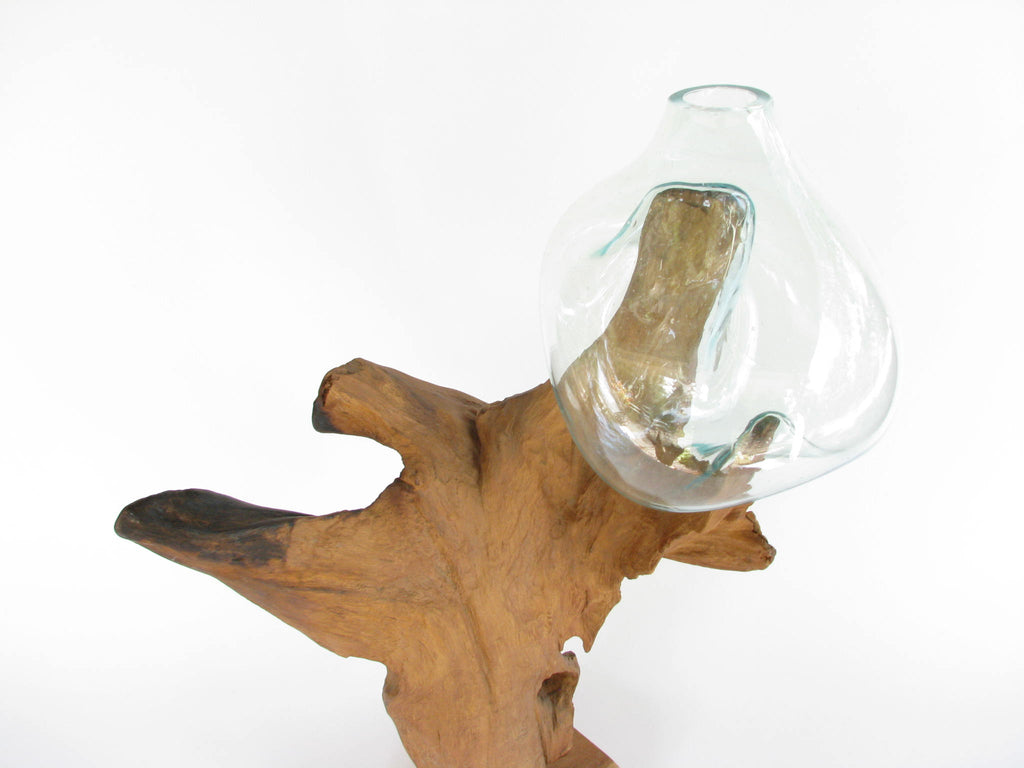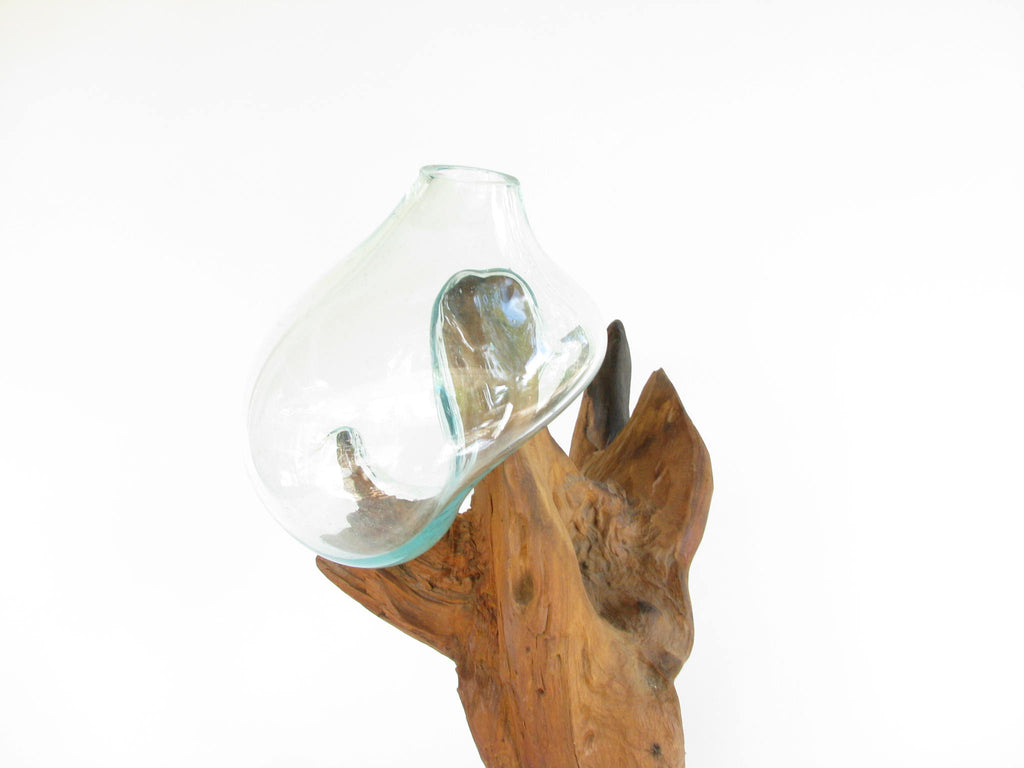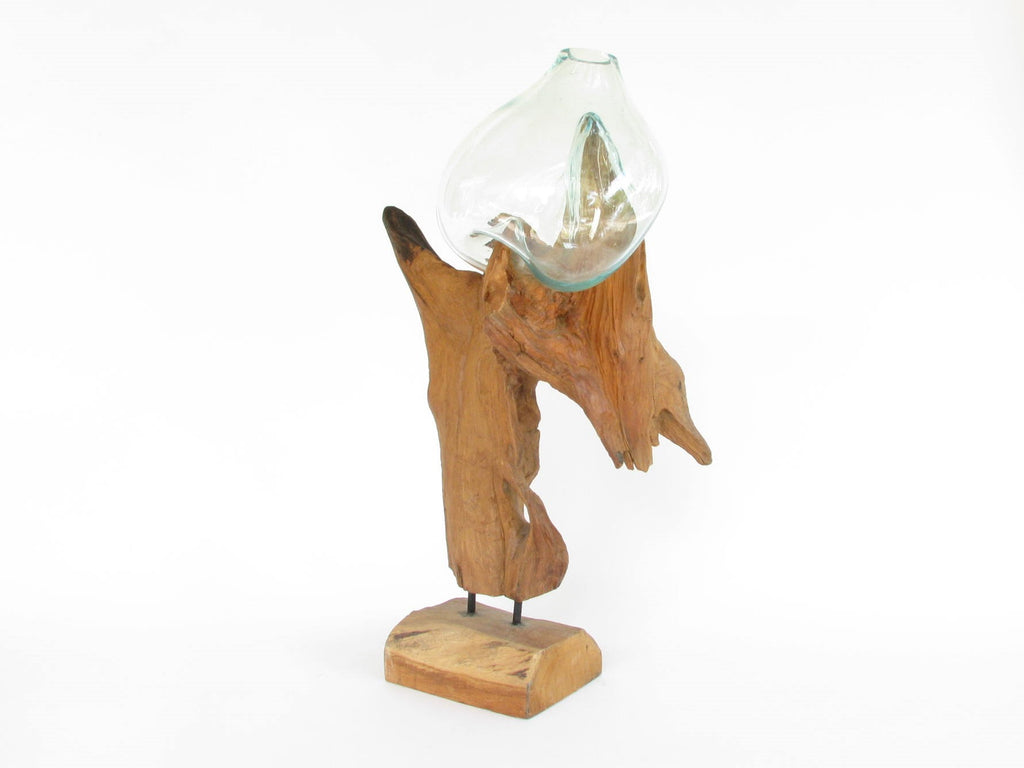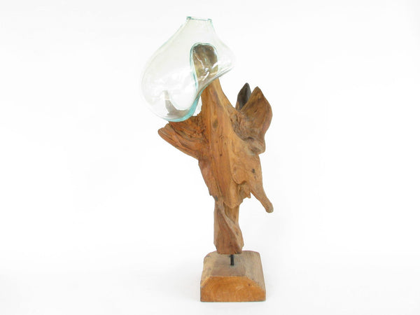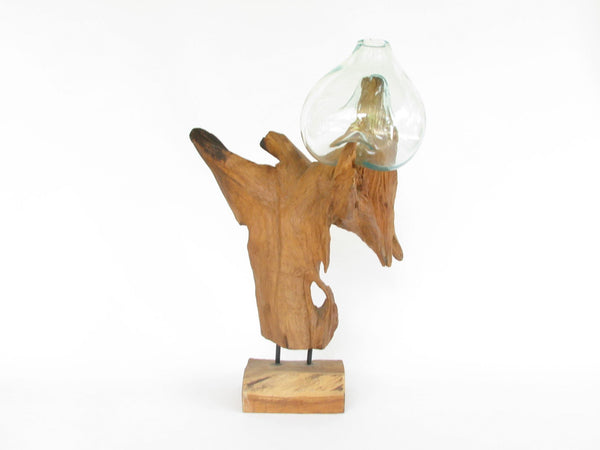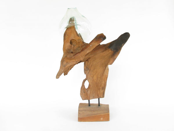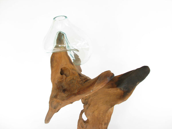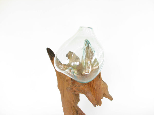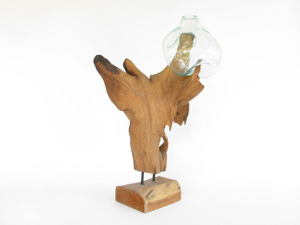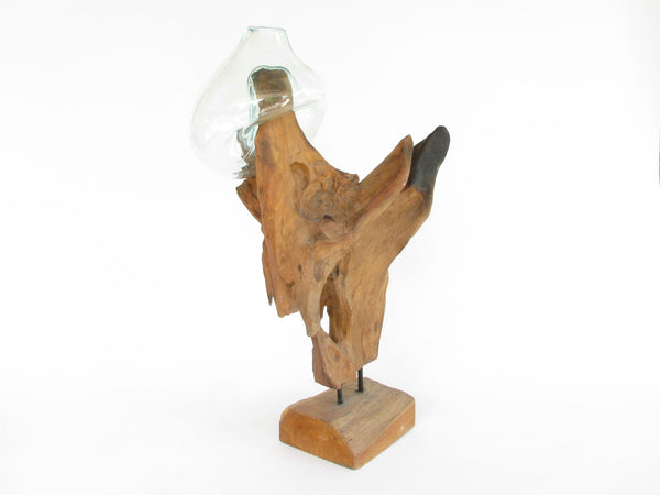 Hand Crafted Teak Driftwood & Blown Glass Sculpture or Terrarium D