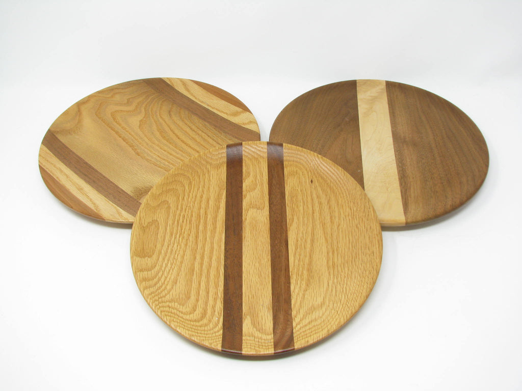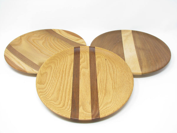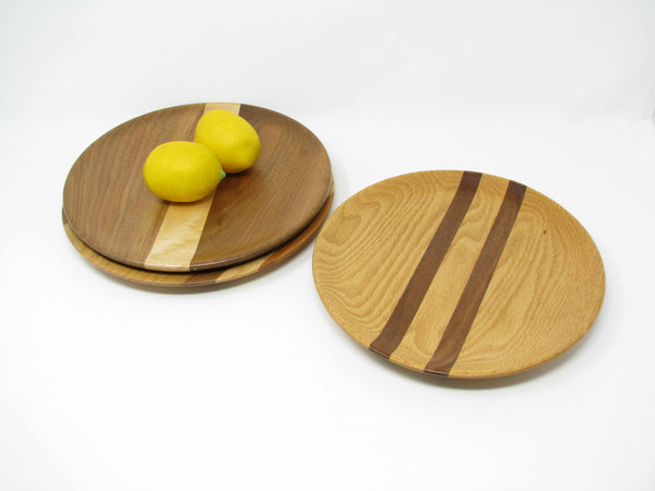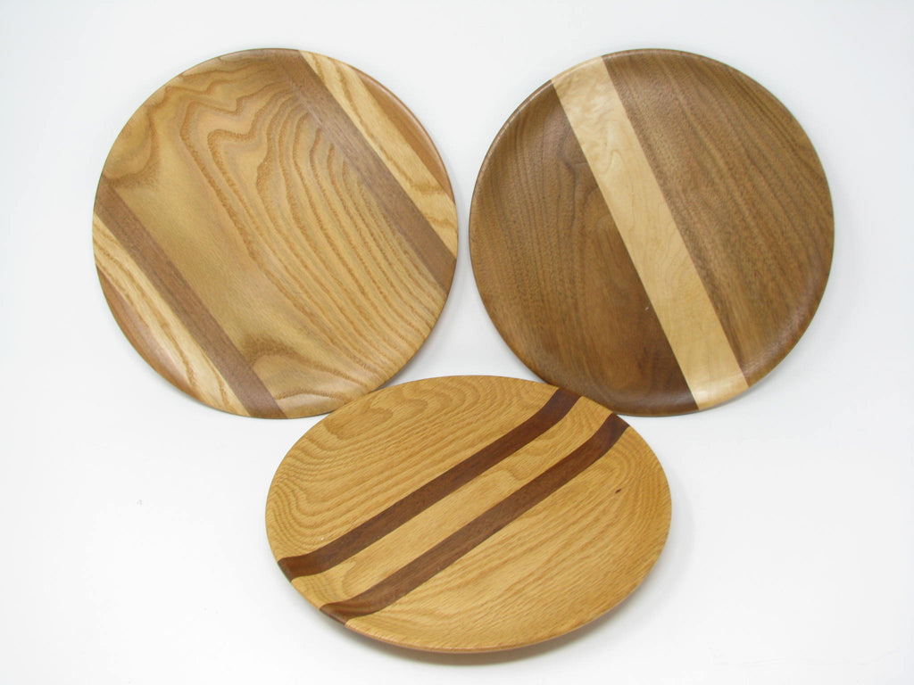 Hand-Turned Inlaid Wood Plates by Sawdust Shop - 3 Pieces