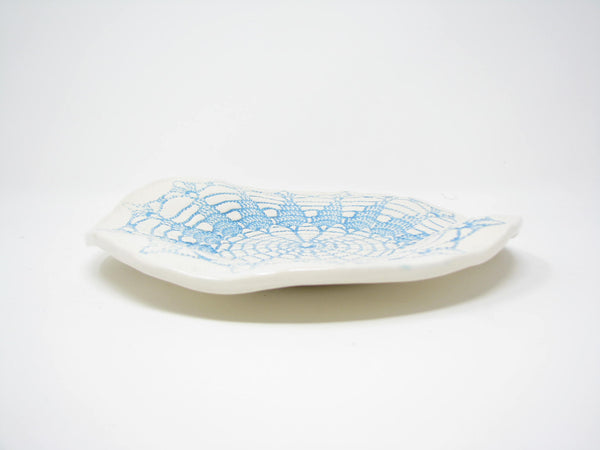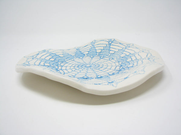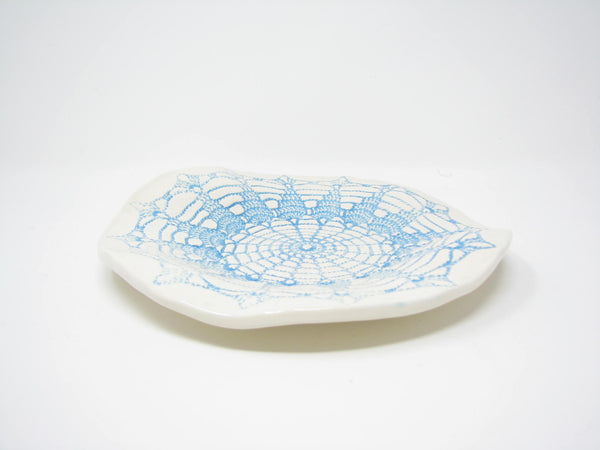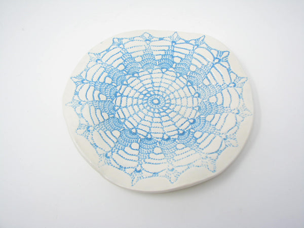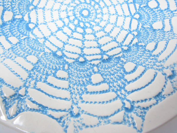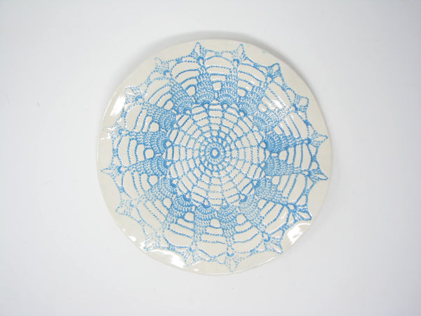 Handcrafted Pottery Decorative Plate or Trinket Dish with Turquoise Net Web Design by ViVi