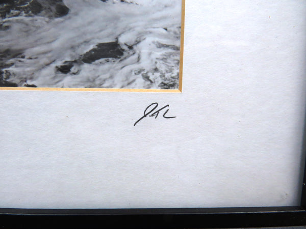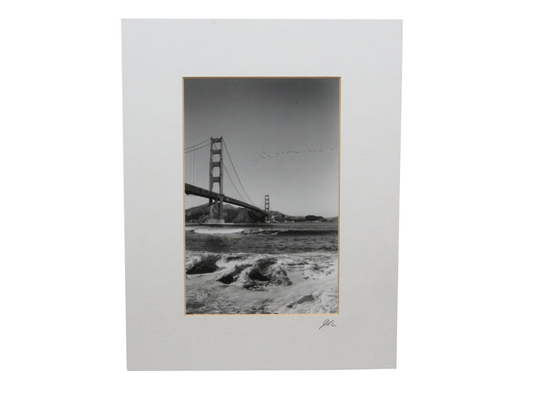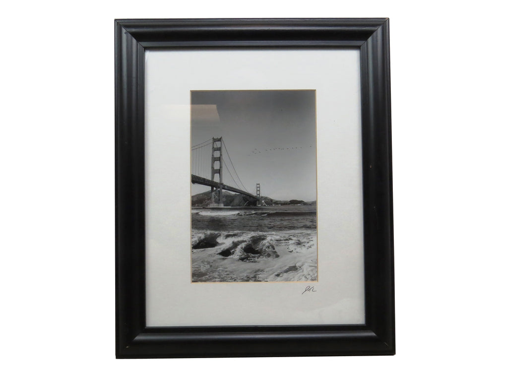 Original black and white photograph of the Golden Gate Bridge by the late Jesse Kalisher. Framed and matted behind glass. Matte is signed.