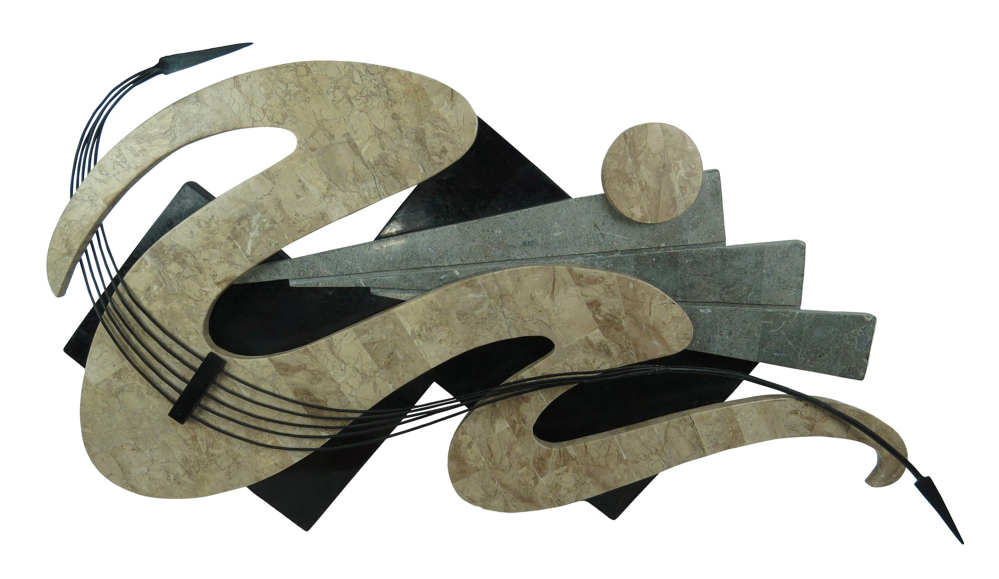 Vintage abstract tessellated stone and wrought iron wall sculpture by Marquis Collection of Beverly Hills. Substantial size and weight. Striking piece of wall art.
