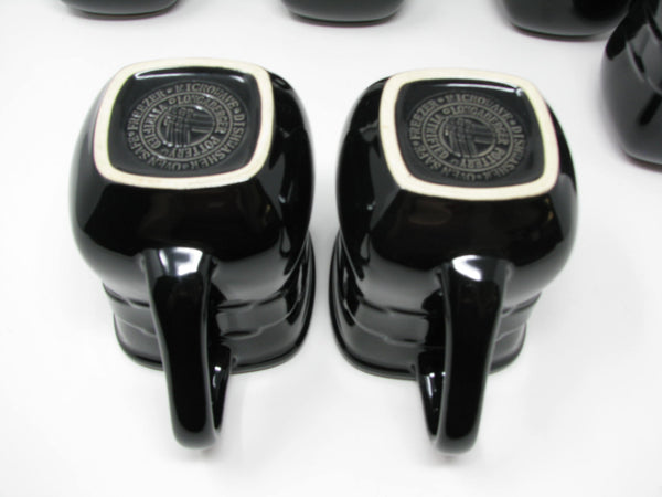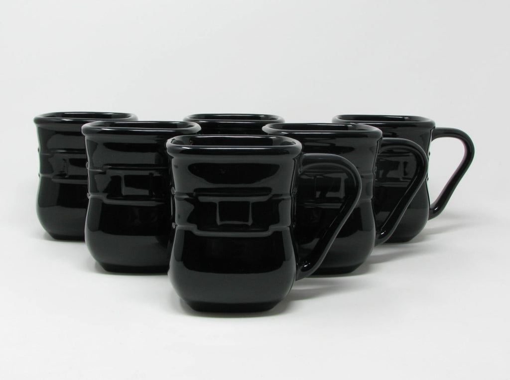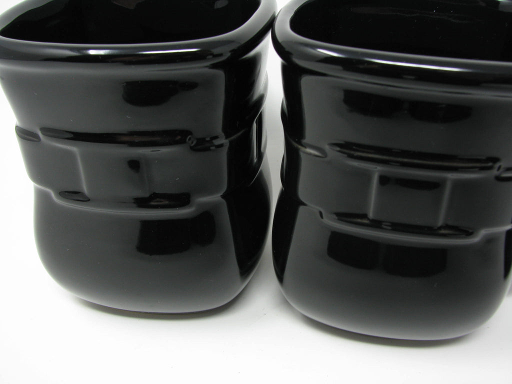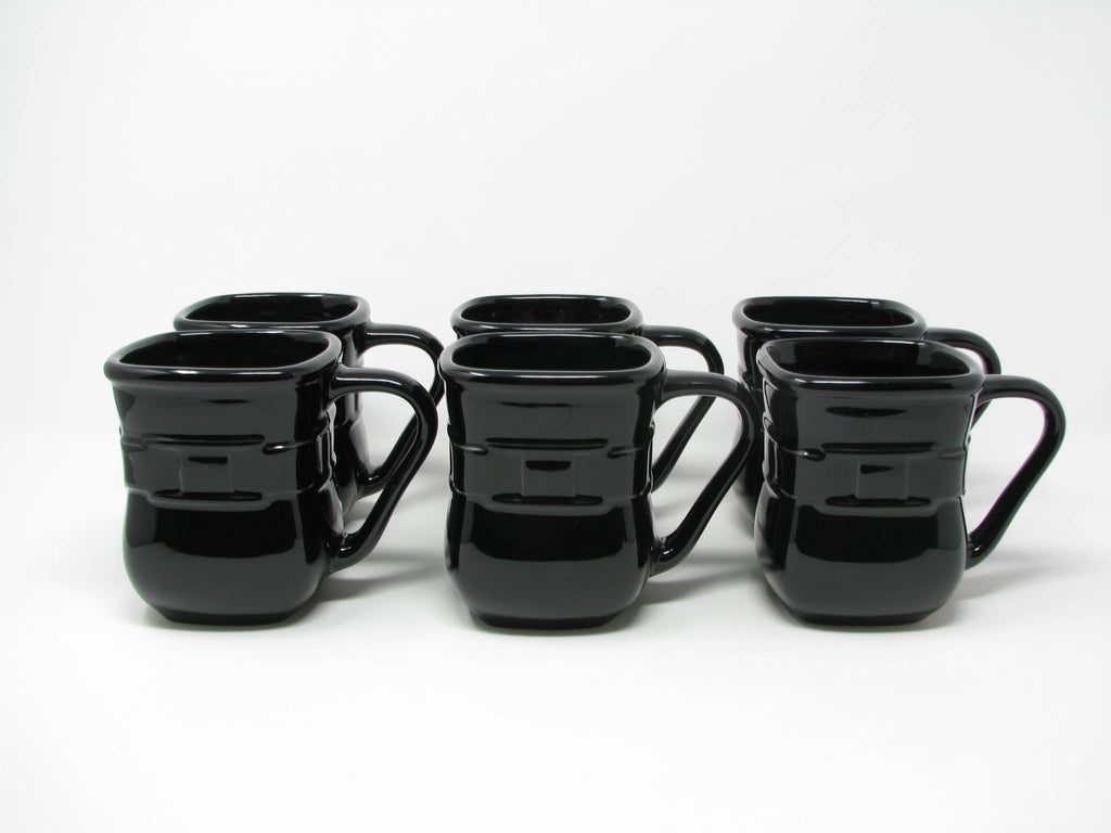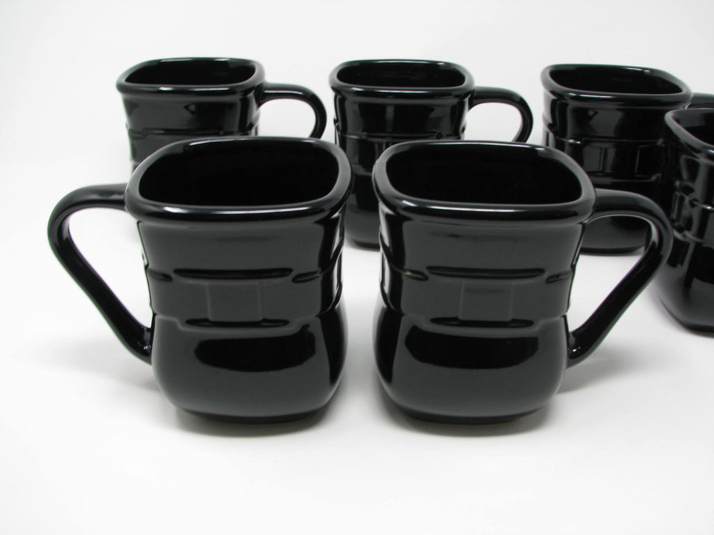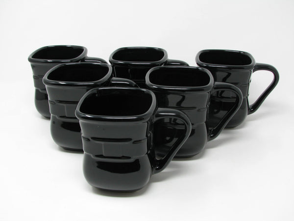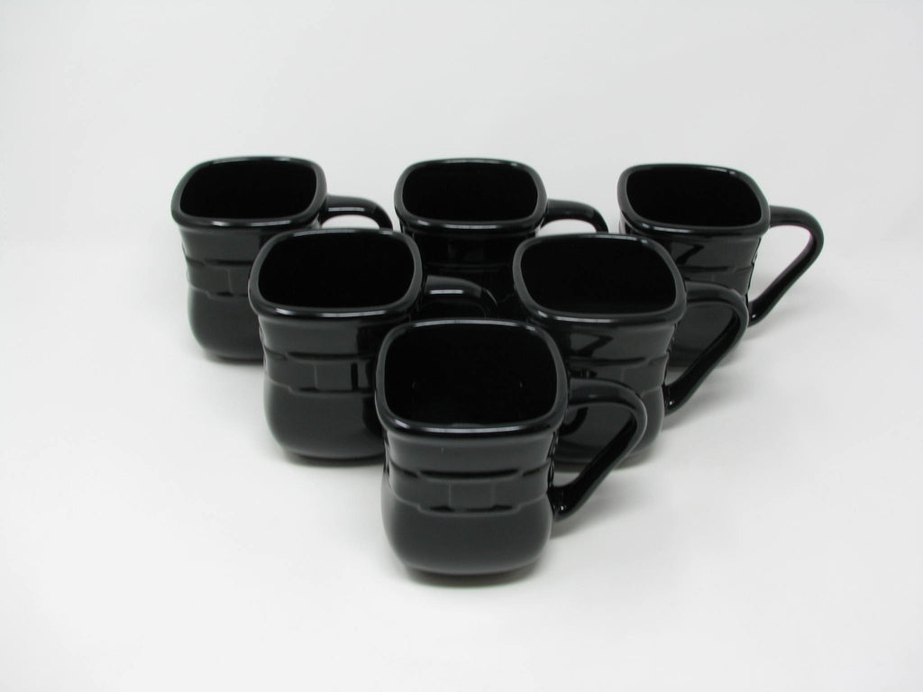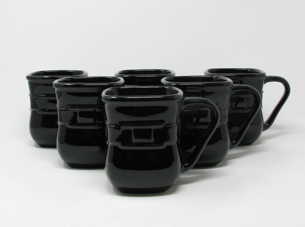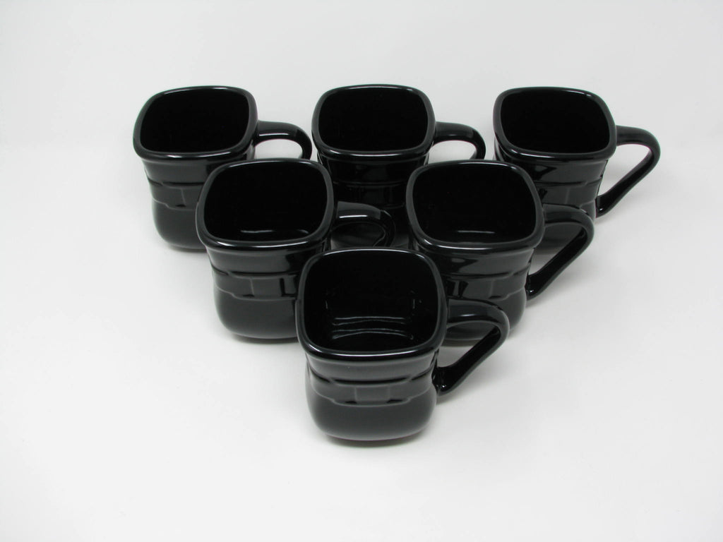 Longaberger Woven Traditions Ebony Black Square Mugs - 6 Pieces