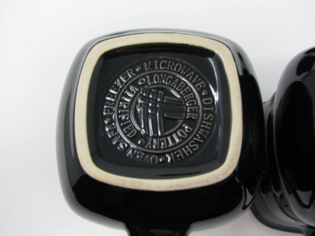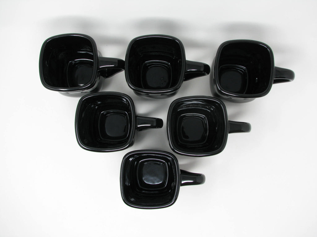 Longaberger Woven Traditions square mugs in Ebony (black). Fantastic shape and glaze. Set includes 6 mugs.