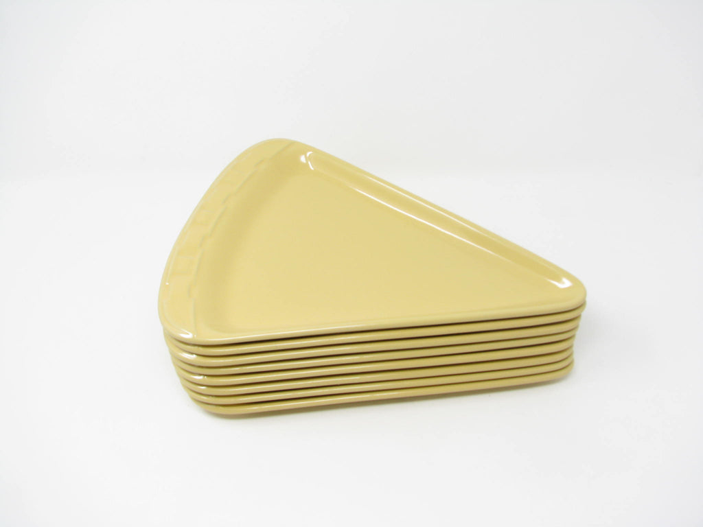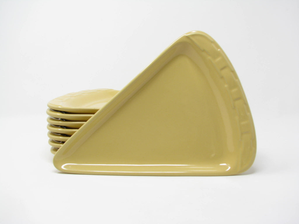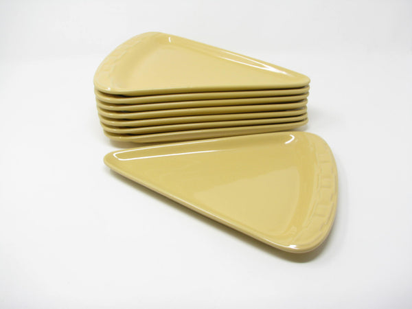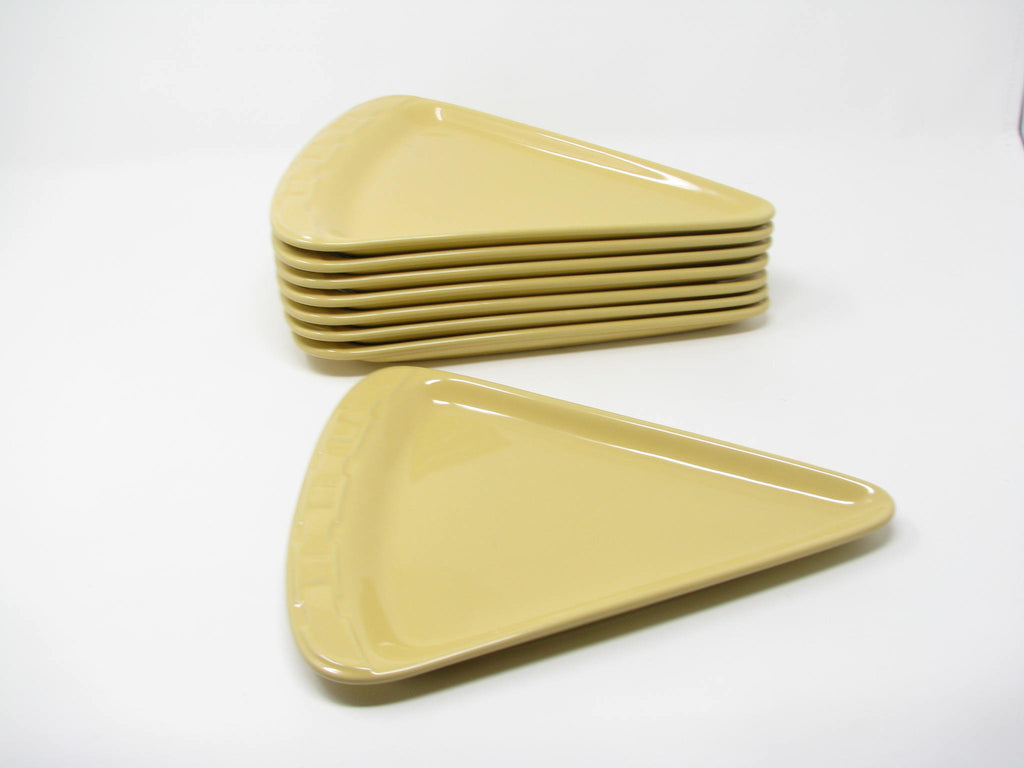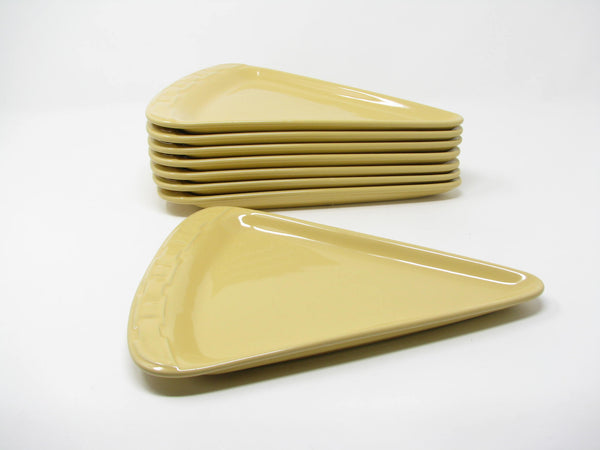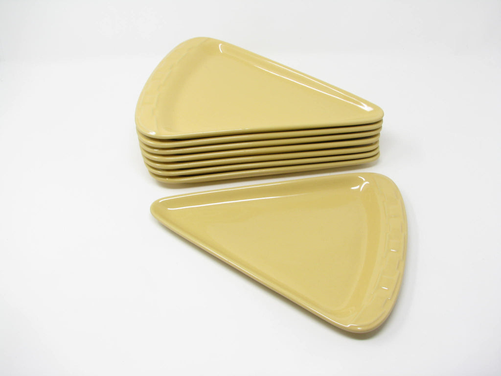Longaberger Woven Traditions pizza slice shaped stoneware plates in Butternut yellow. Fantastic shape and glaze. Set includes 8 plates.