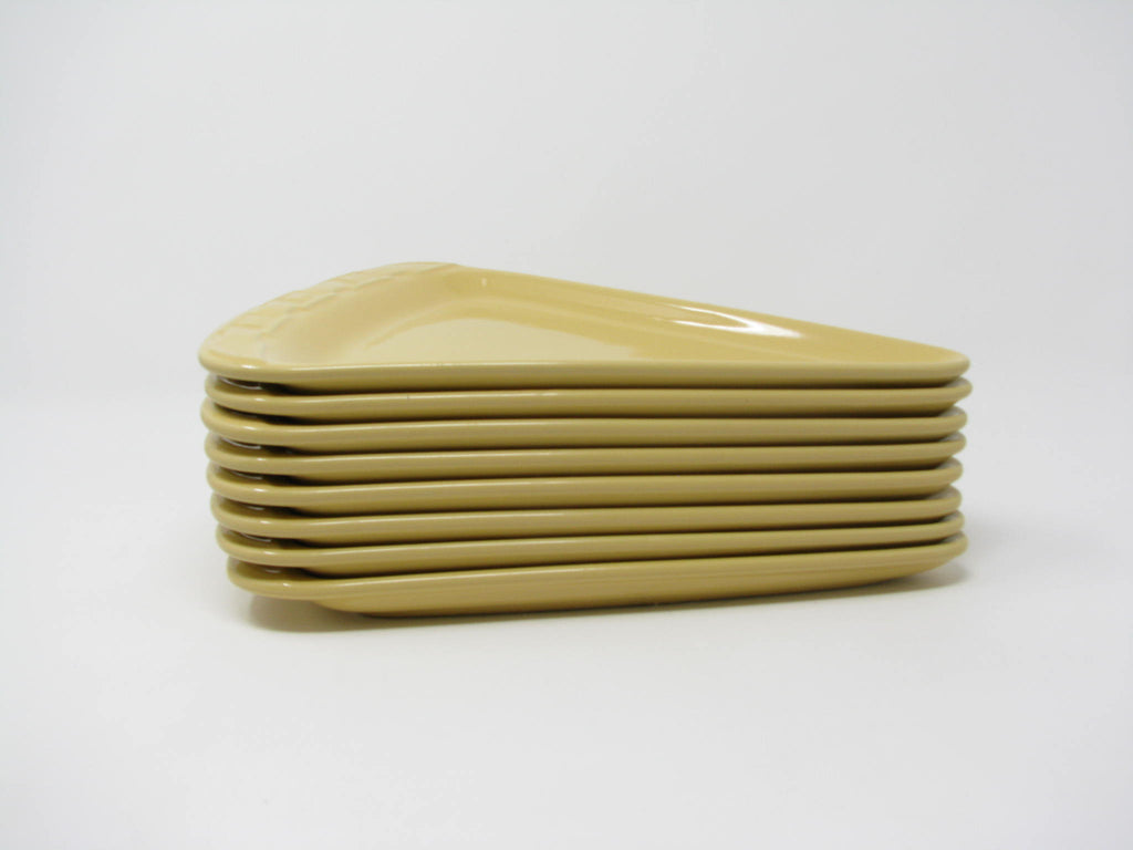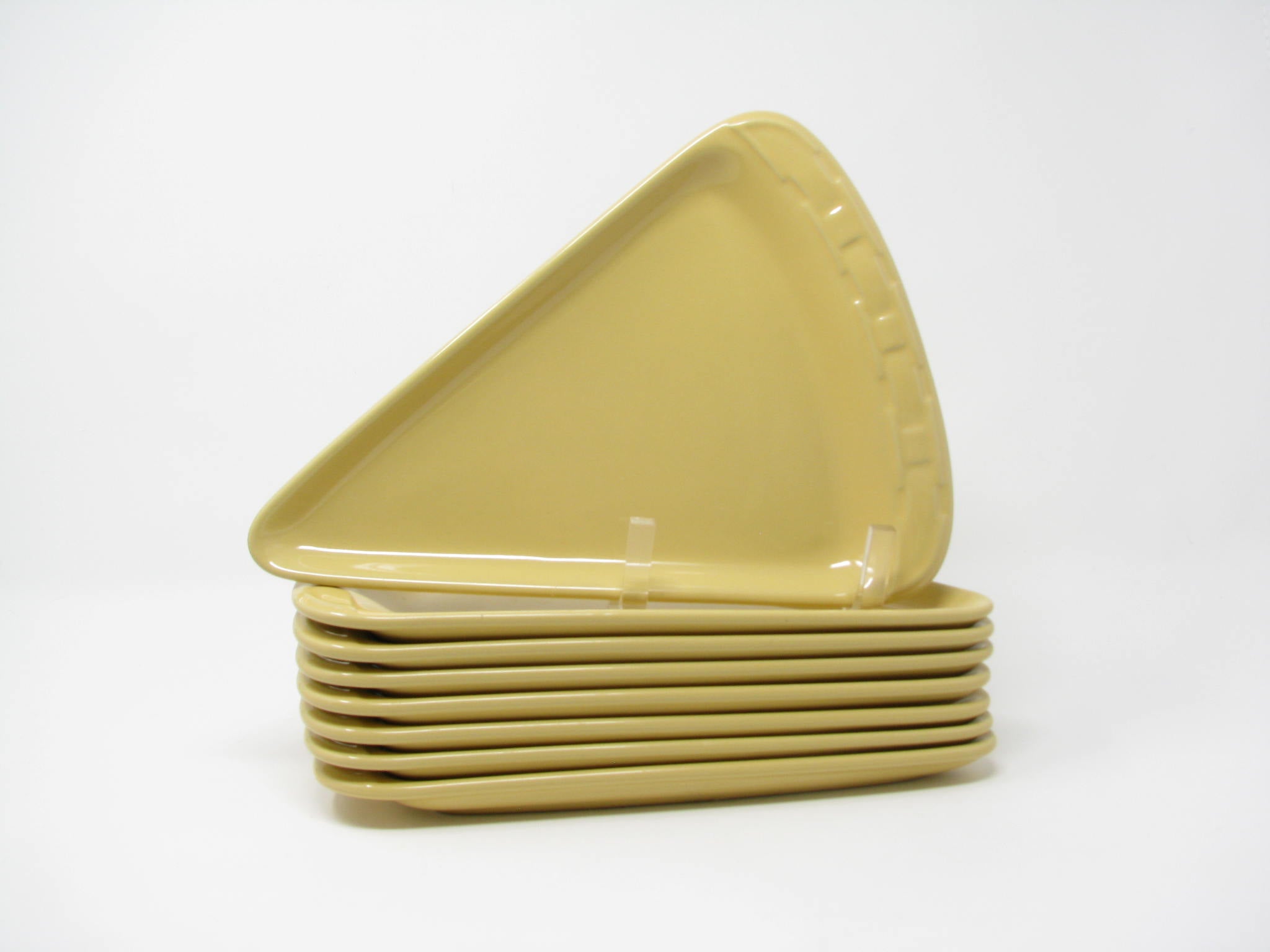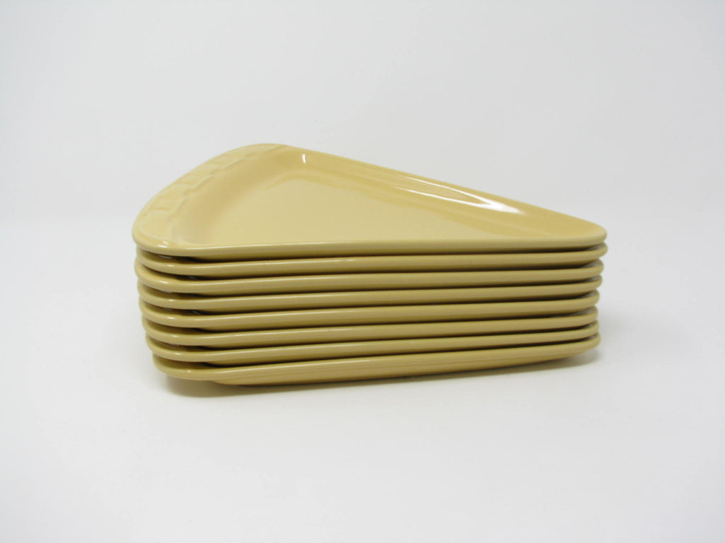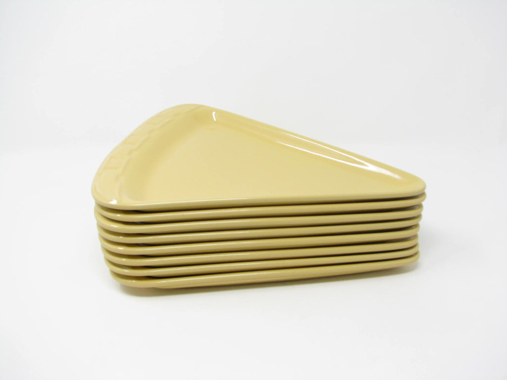Longaberger Woven Traditions pizza slice shaped stoneware plates in Butternut yellow. Fantastic shape and glaze. Set includes 8 plates.