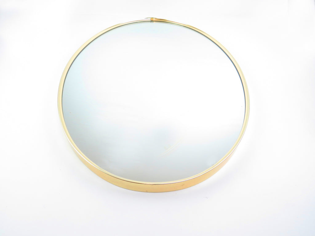 Damage or Points of Notice: The brass frame is in excellent vintage condition with no scratches or dents. The mirror has very minor fading of silver from versa.