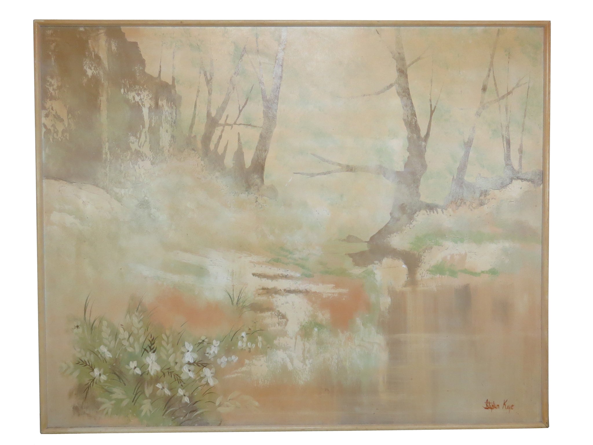 Mid Century Stephen Kaye Abstract Oil on Canvas Landscape