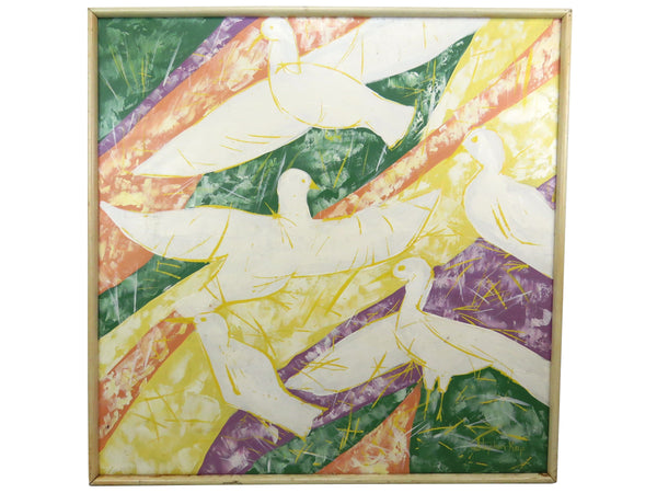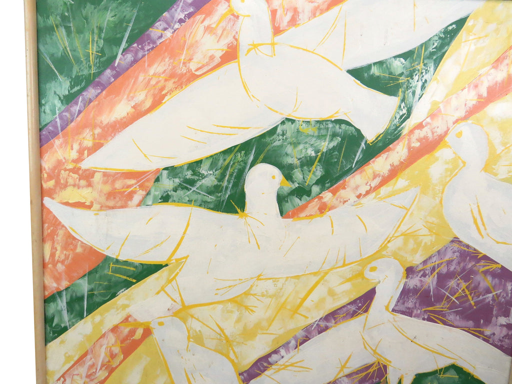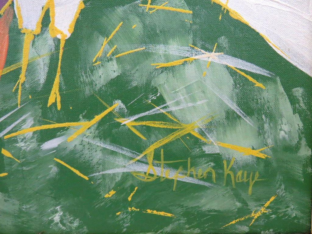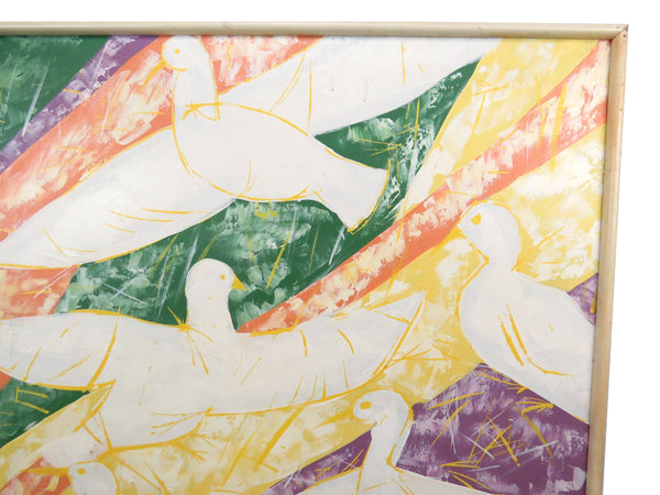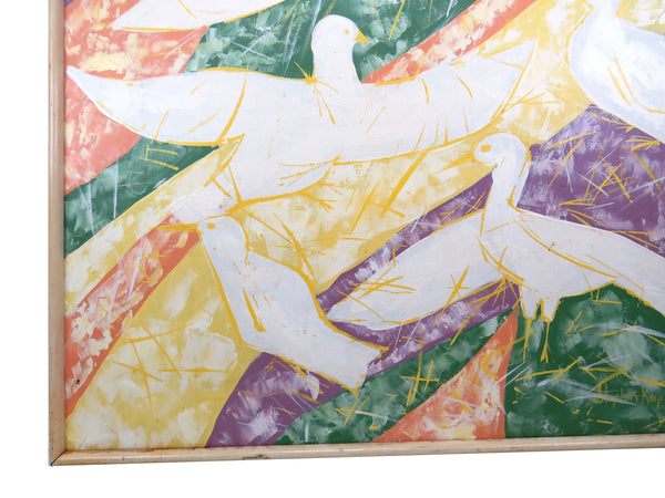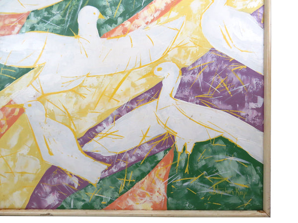 Mid Century Stephen Kaye Abstract Oil on Canvas of Flying Flock of Birds