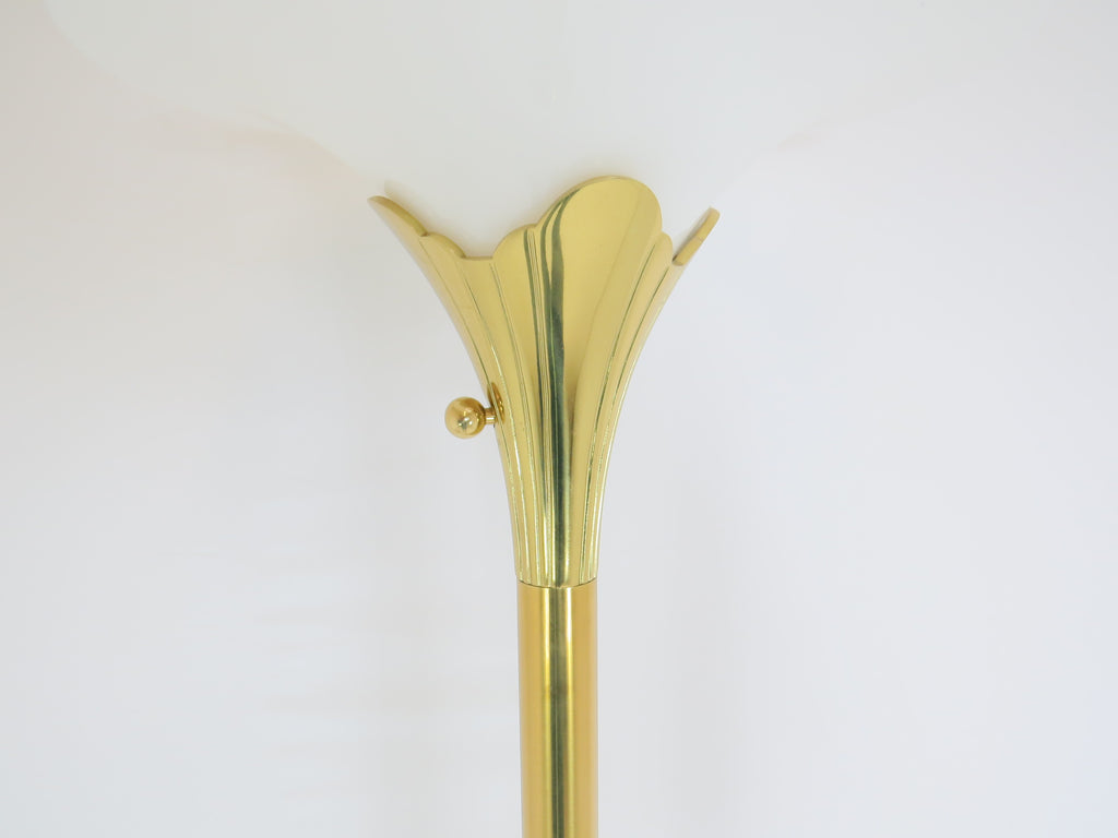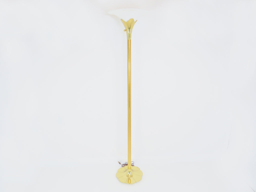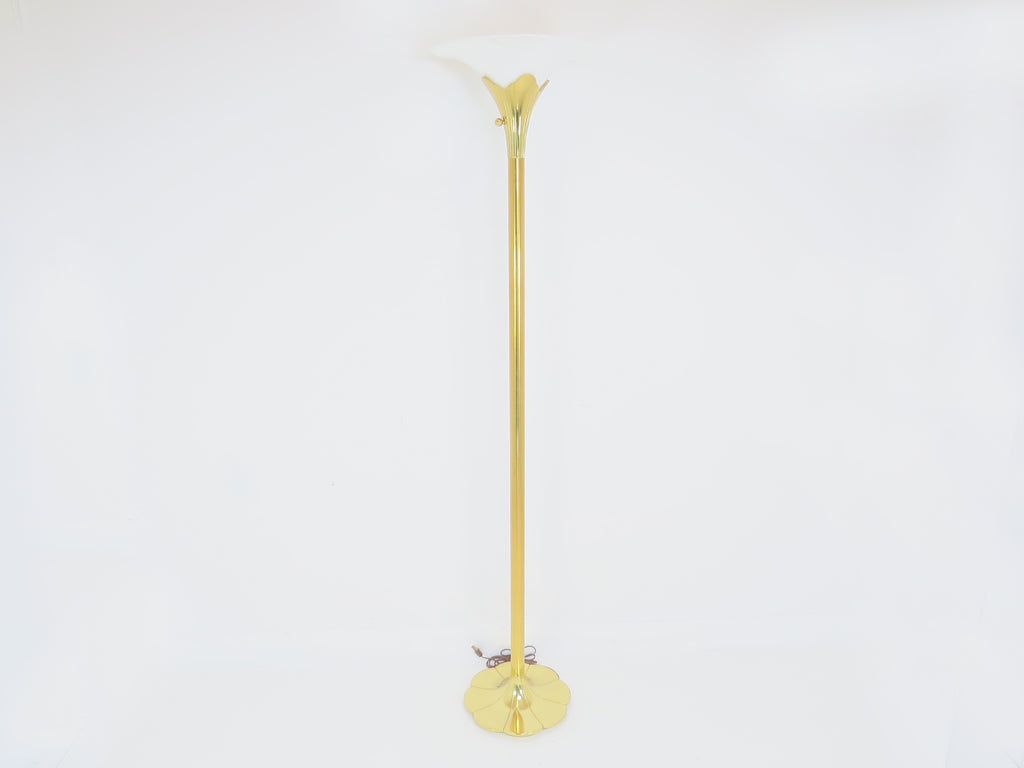 Mid Century Stiffel Art Deco Style Brass Tulip / Lily Torchiere Floor Lamp on Lotus Base