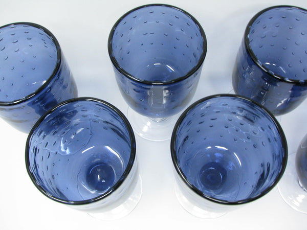 Modern Purple Bubble or Seeded Glass Goblets with Thick Stem - 7 Pieces