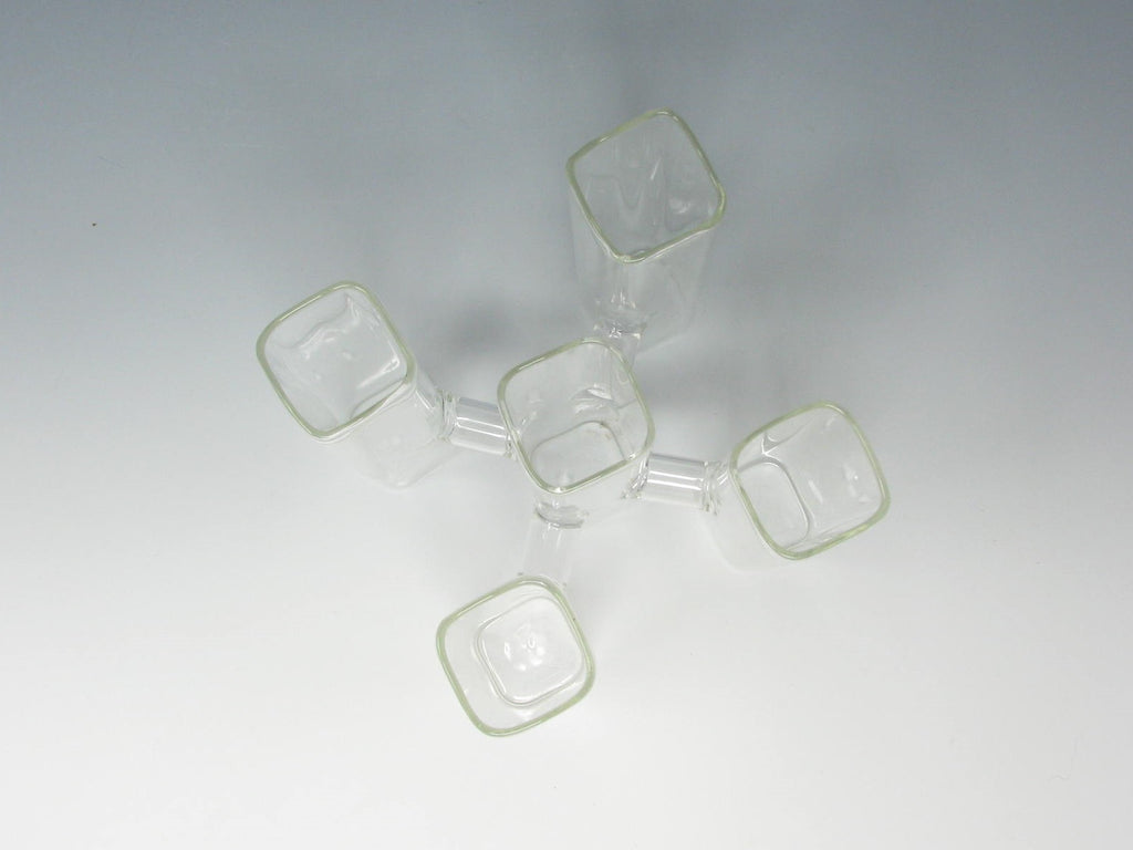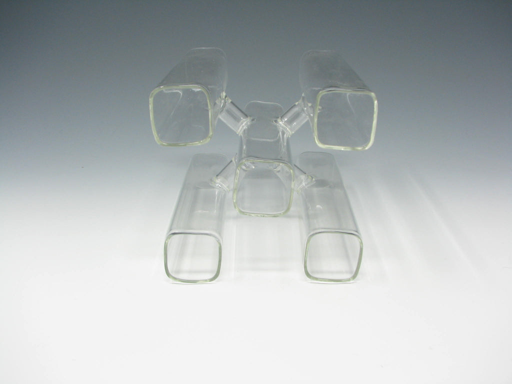 Modern Roost Ikebana style handcrafted glass bud vase featuring a hub and spoke collection of glass tubes. This vase is made from borosilicate glass (lab glass) which is three times stronger than regular glass. Flowers not included.