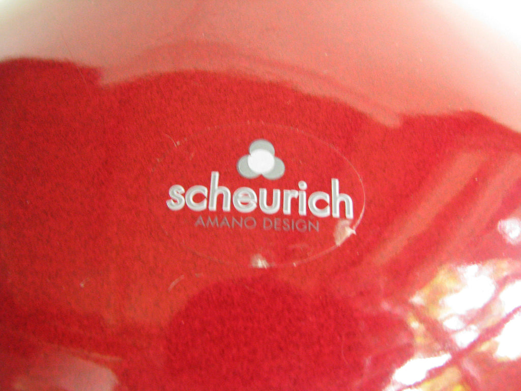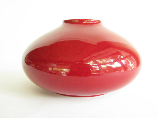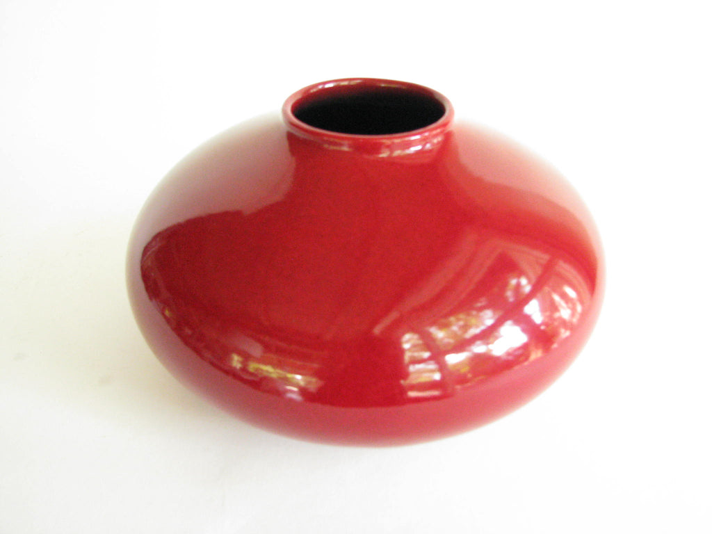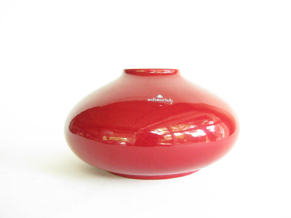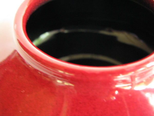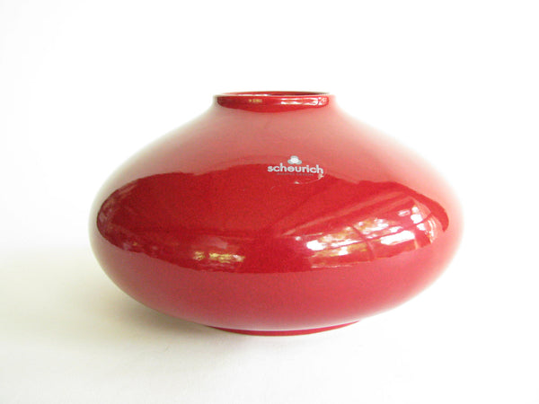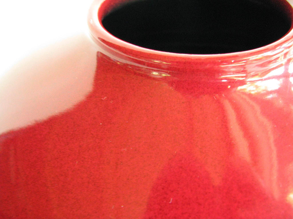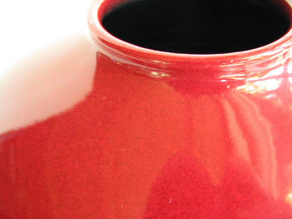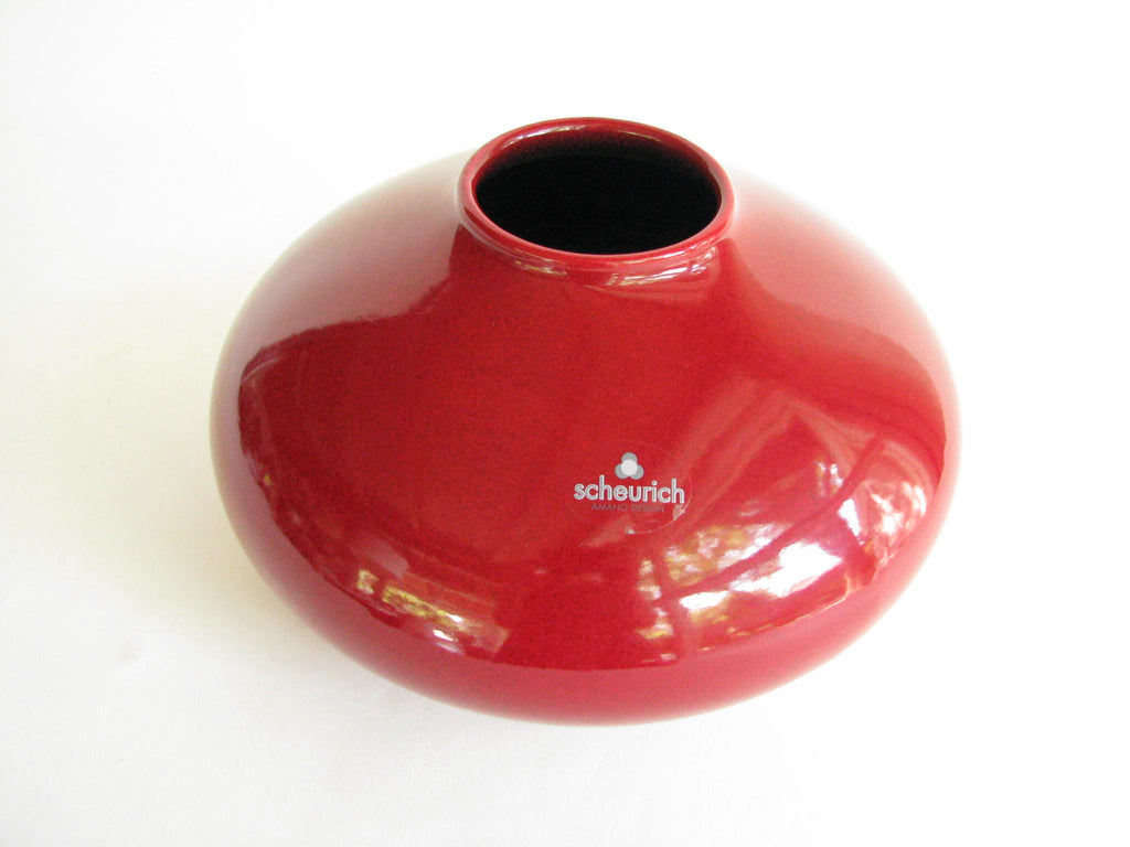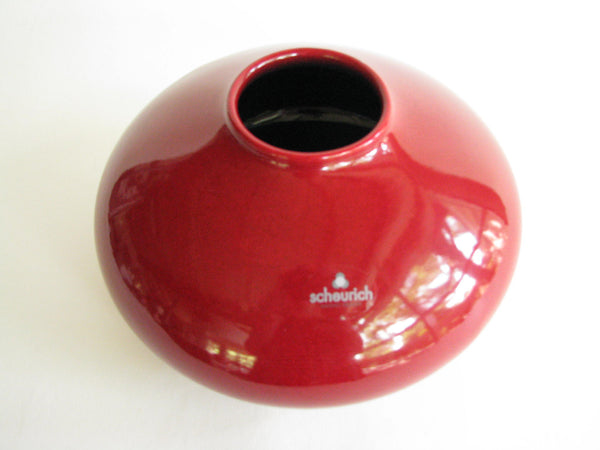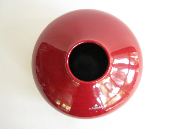 Large modern Schuerich Amano Design art pottery vase made in Germany. Stunning red lava color. Based upon the debossed mark and 'Amano', this piece was made approximately between 2001 - 2005. (Model 629-13)