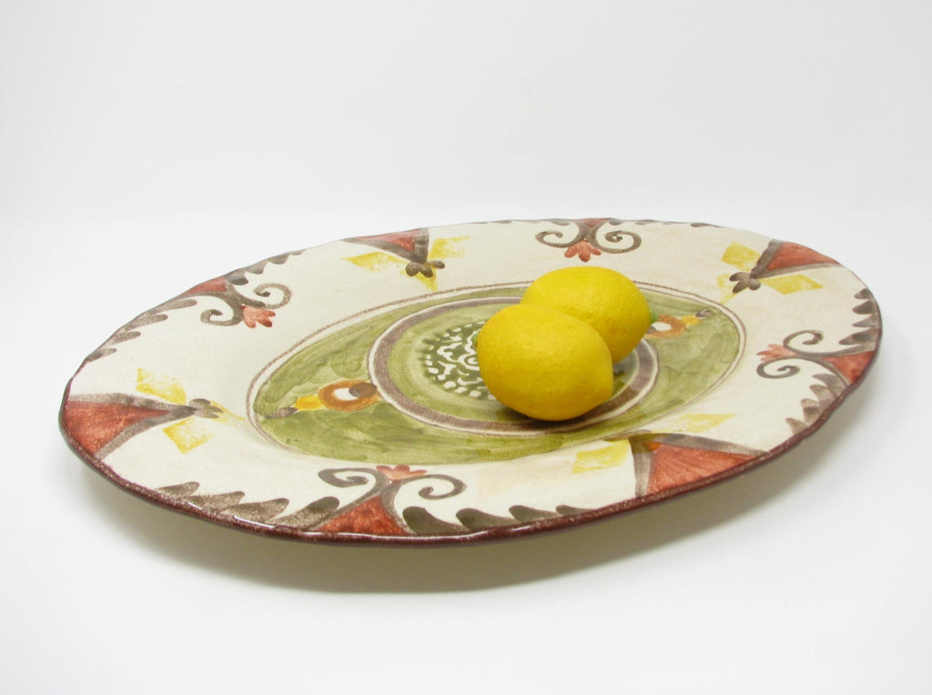 Opera Nova Rale large hand-crafted oval Italian ceramic platter. Made in Italy. Lemons not included.